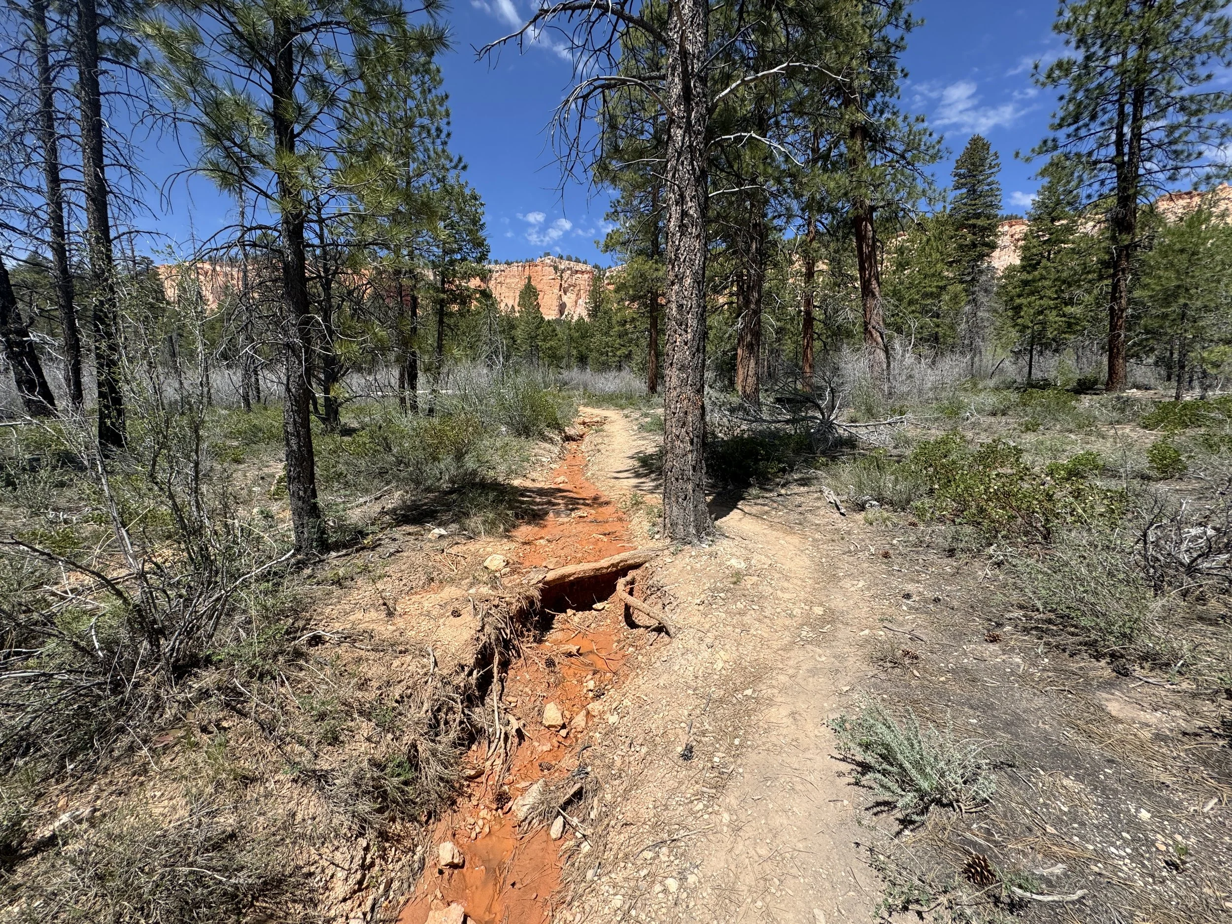 After the Dixie National Forest boundary, the Under-the-Rim Trail crosses the South Fork of the Ponderosa Creek, which, in my experience, had less water than the North Fork.