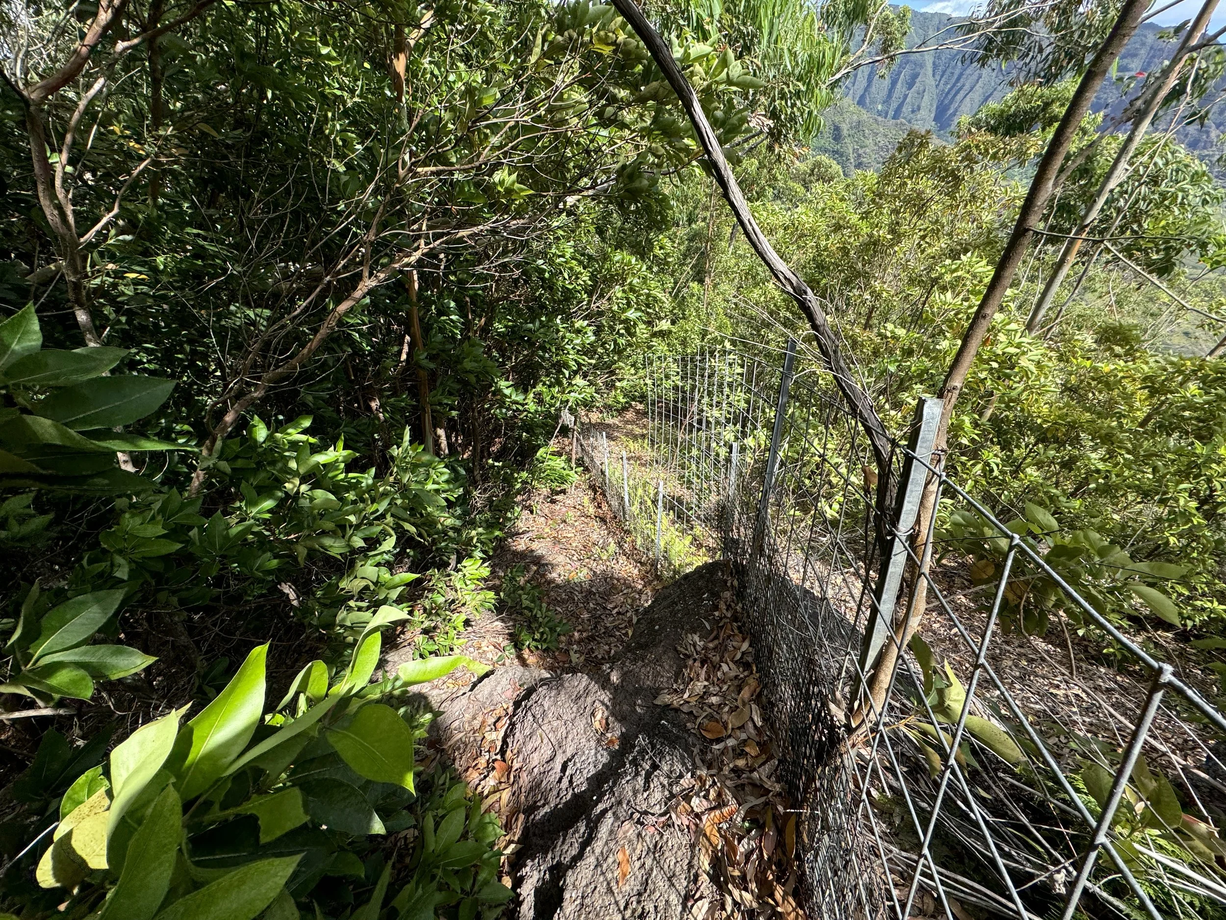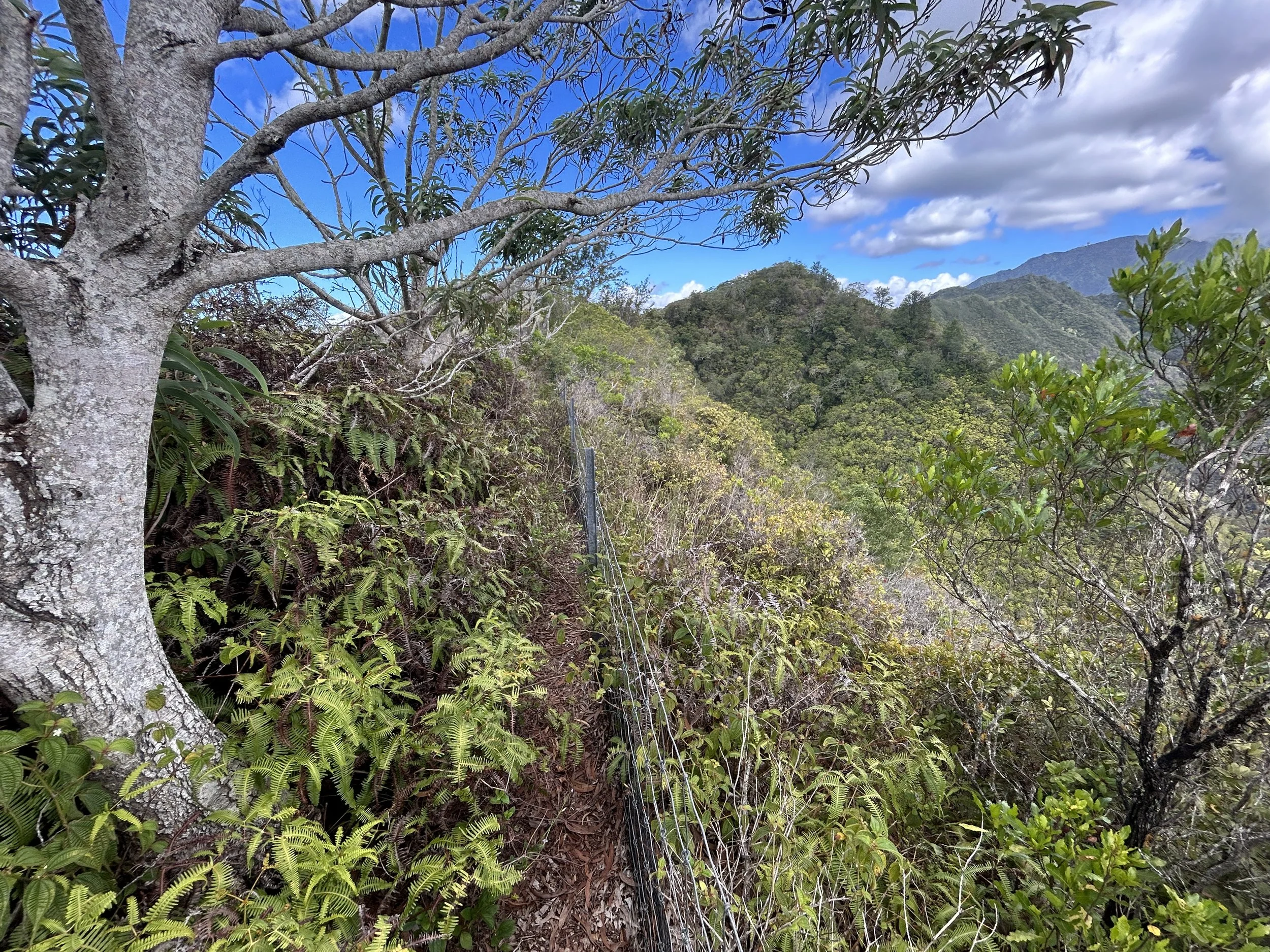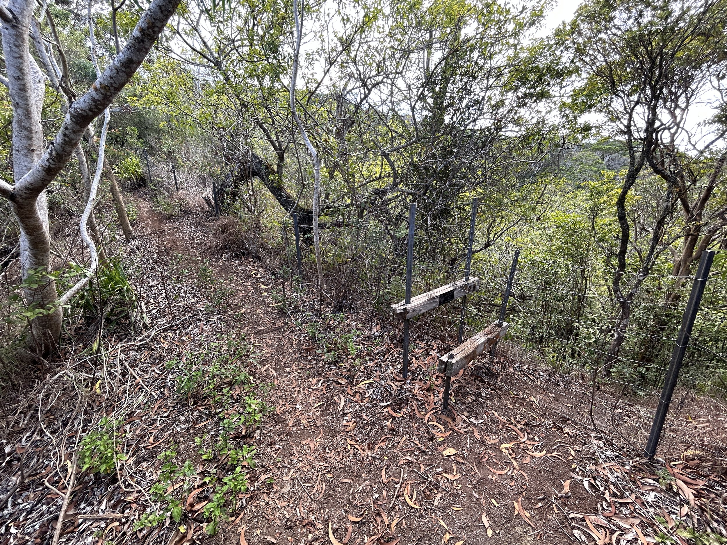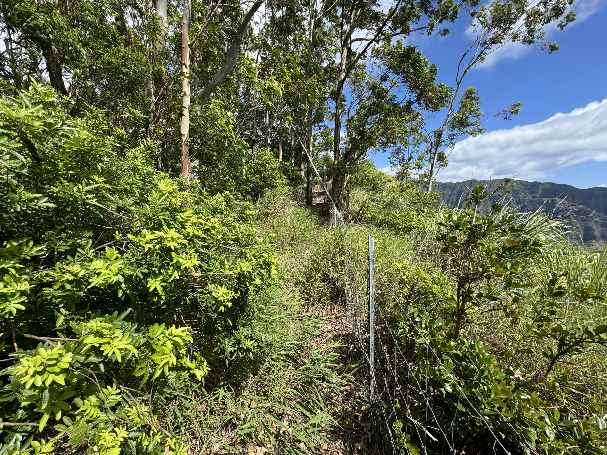 When the Kuaokalā Trail comes to the Mākua Valley ungulate exclusion fence, go left after the gate.