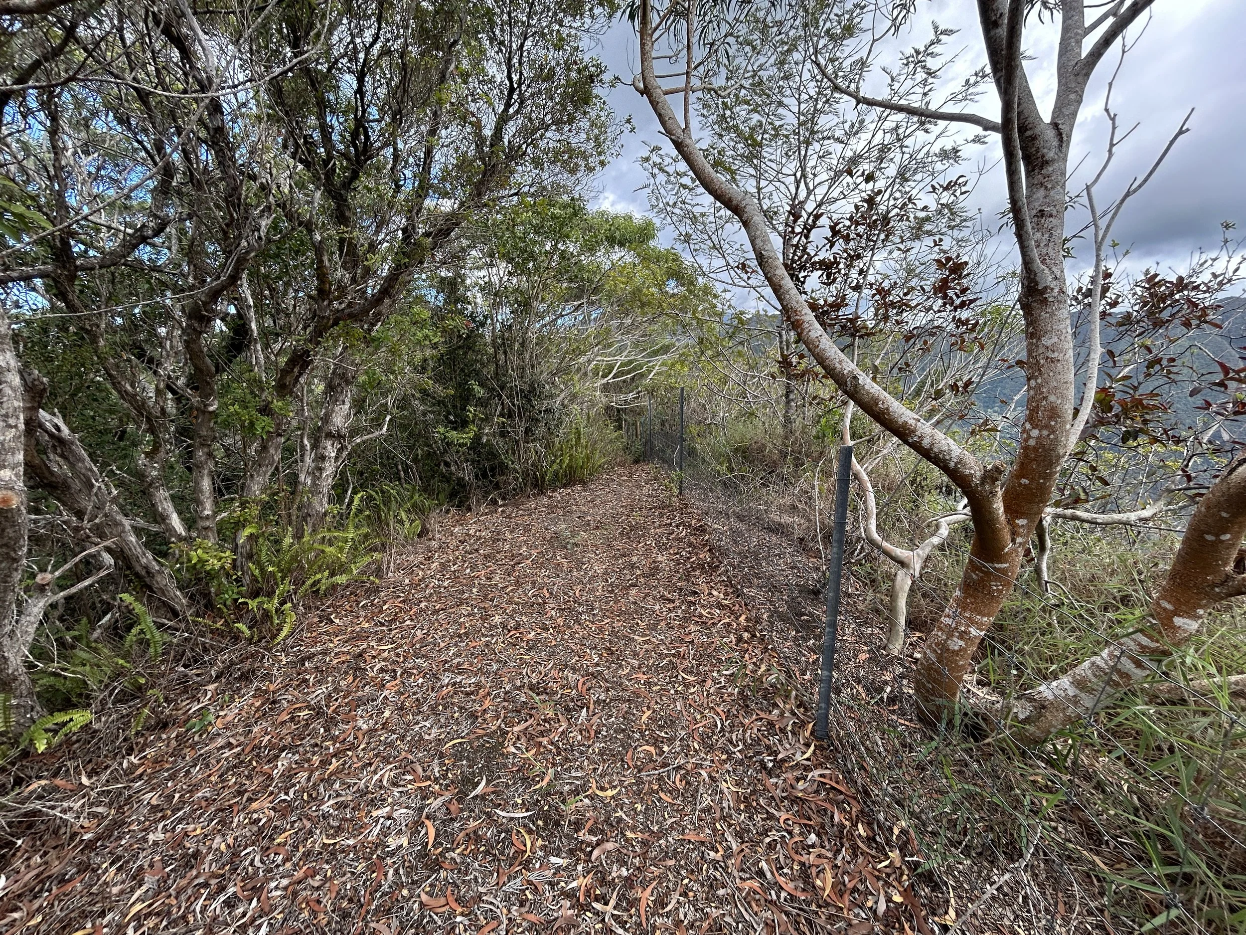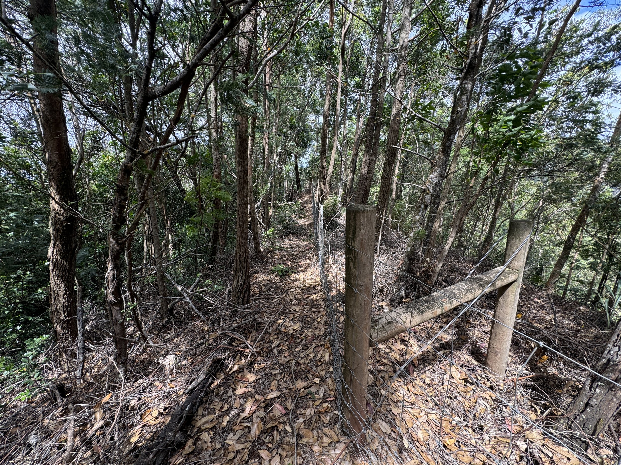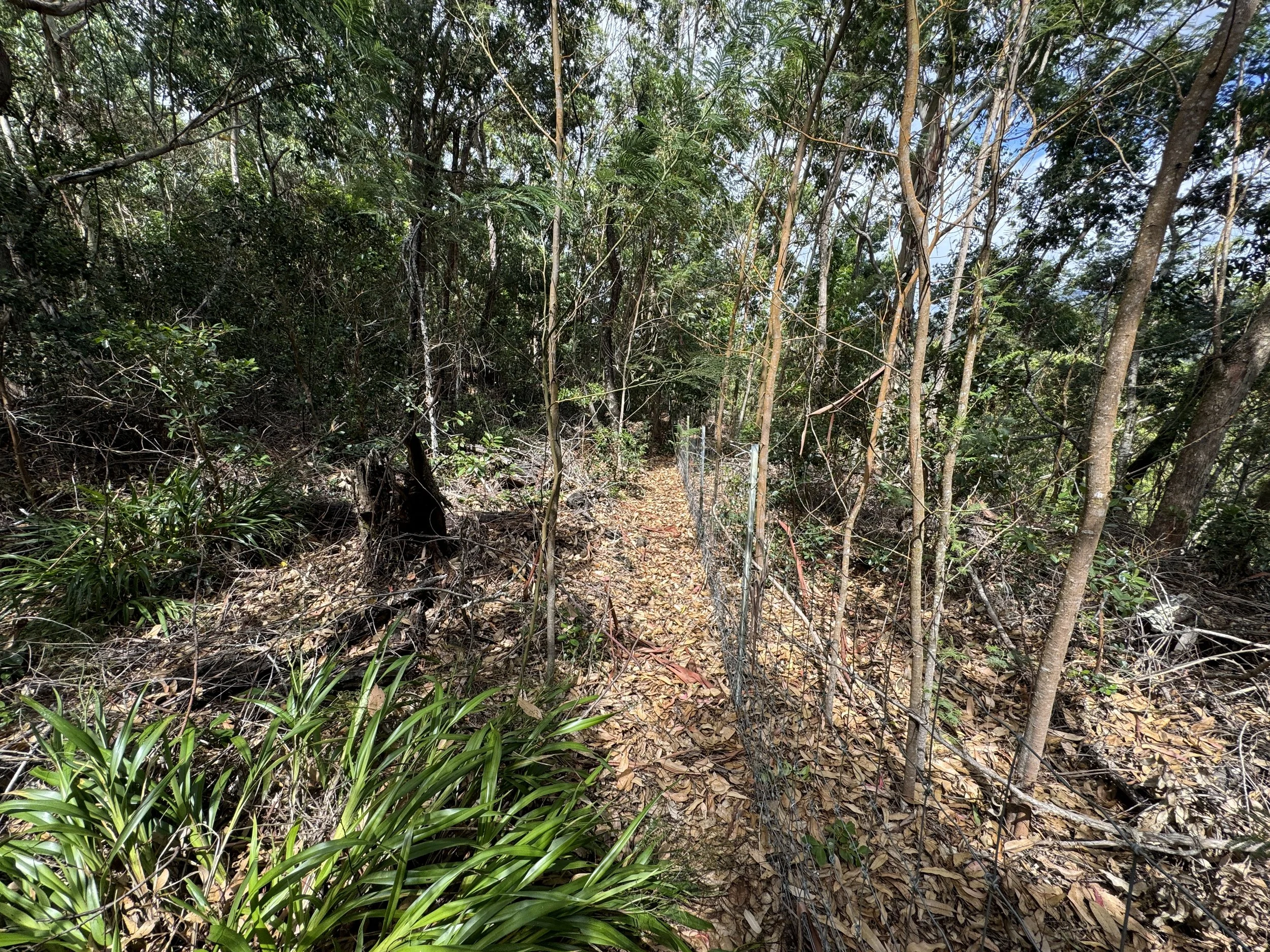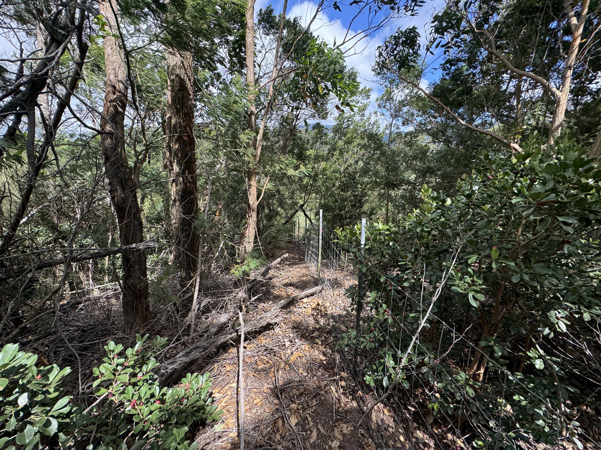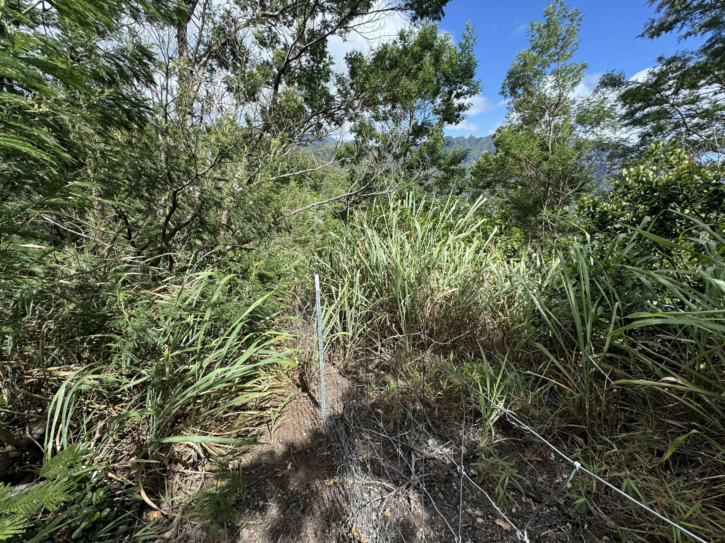 When the Kuaokalā Trail comes to the Mākua Valley ungulate exclusion fence, go left after the gate.