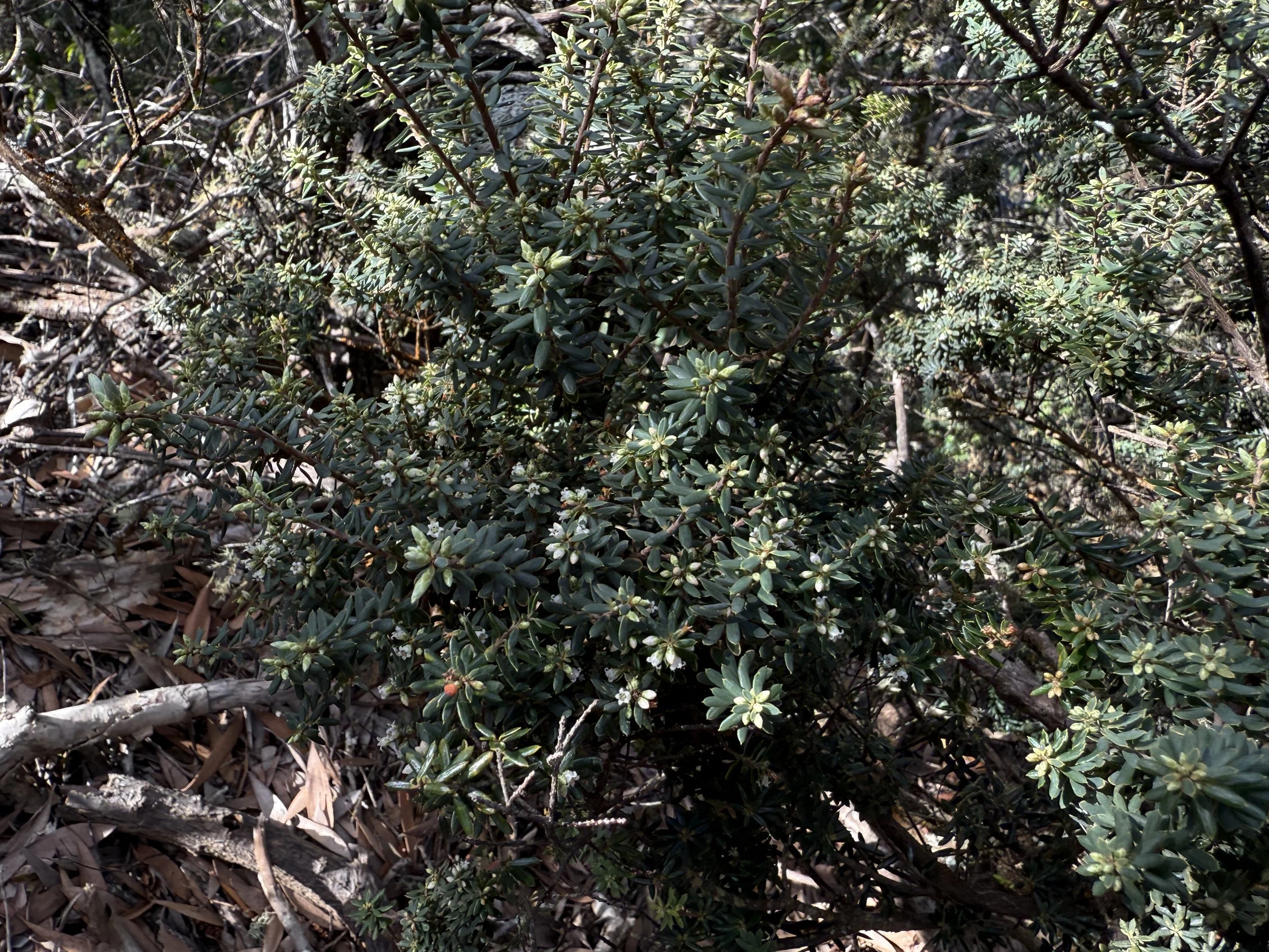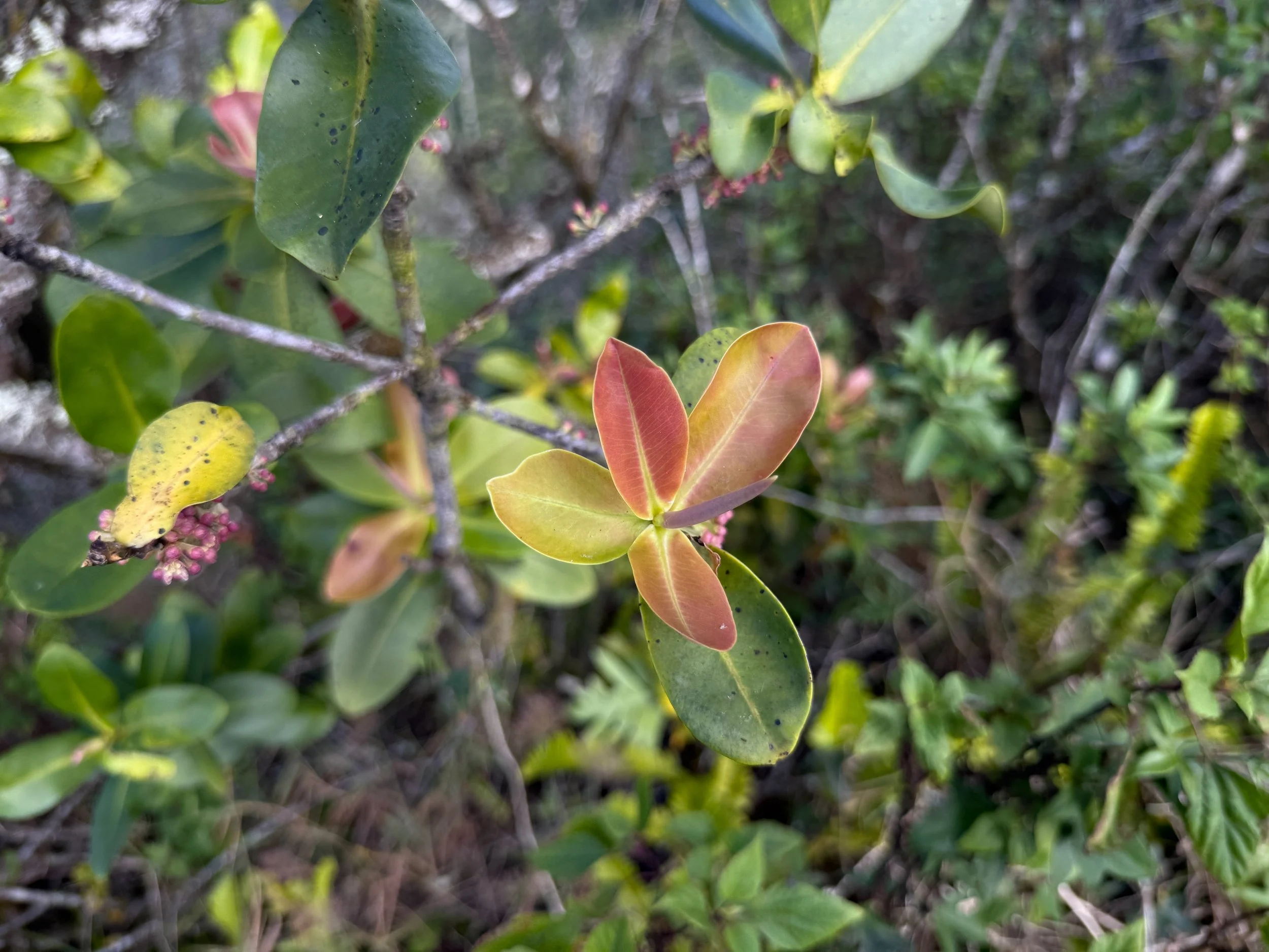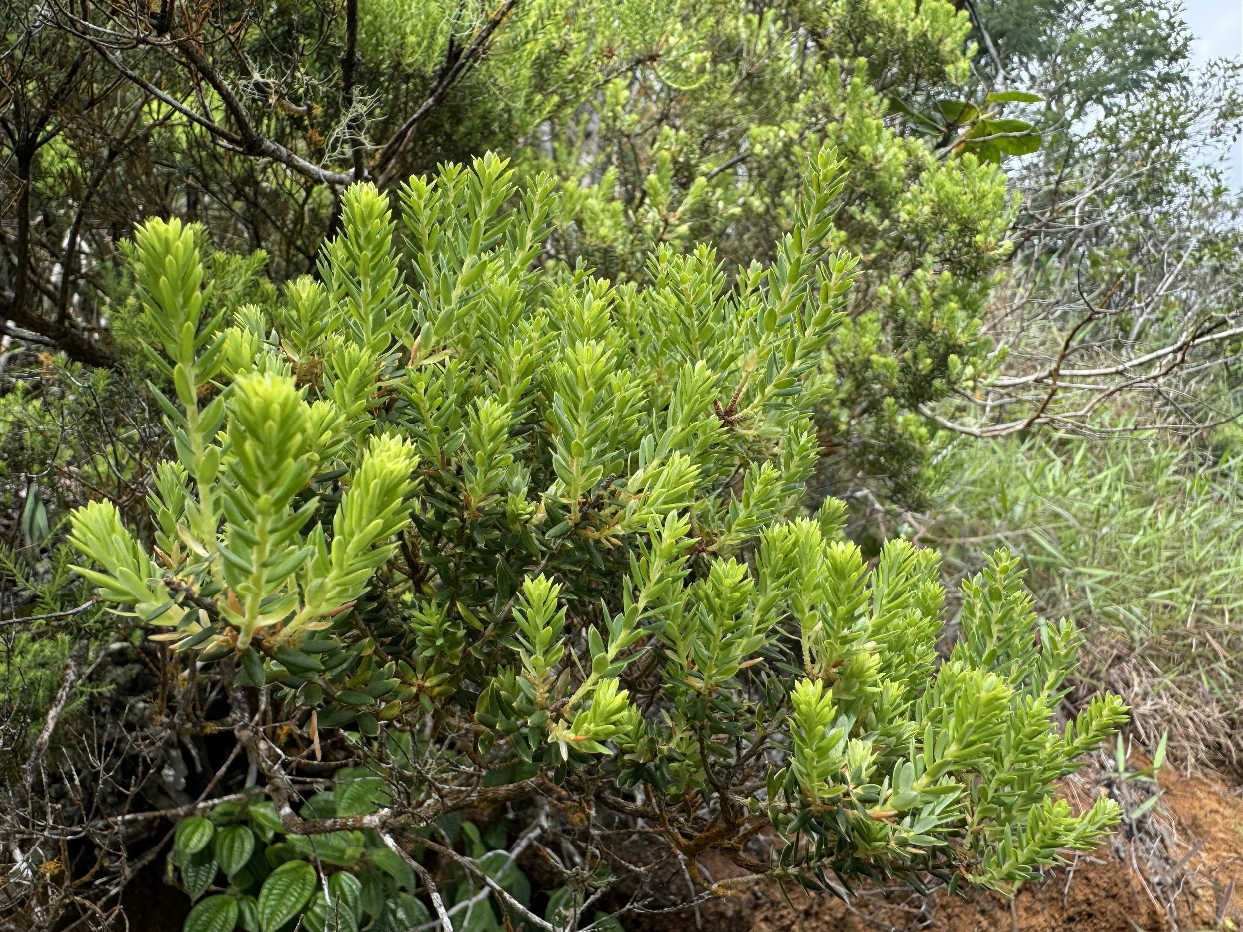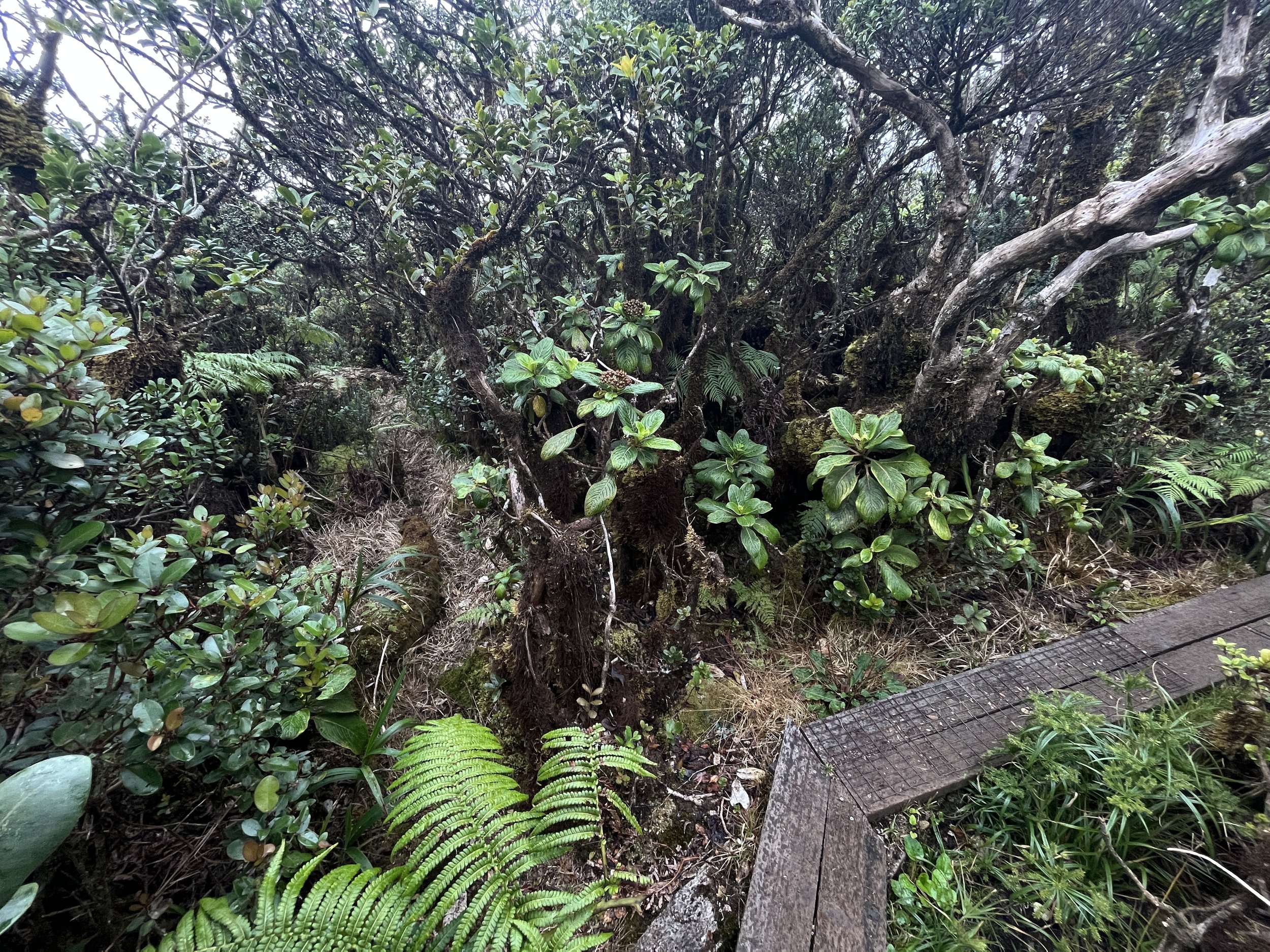 By this, I mean that the WST is covered in invasive Christmas Berry, which is much woodier than Uluhe, making it much more annoying and slow to walk through. On top of that, we spent this entire section hunched over just to take the easiest path through it because the overgrowth gives you no places to stand up comfortably.