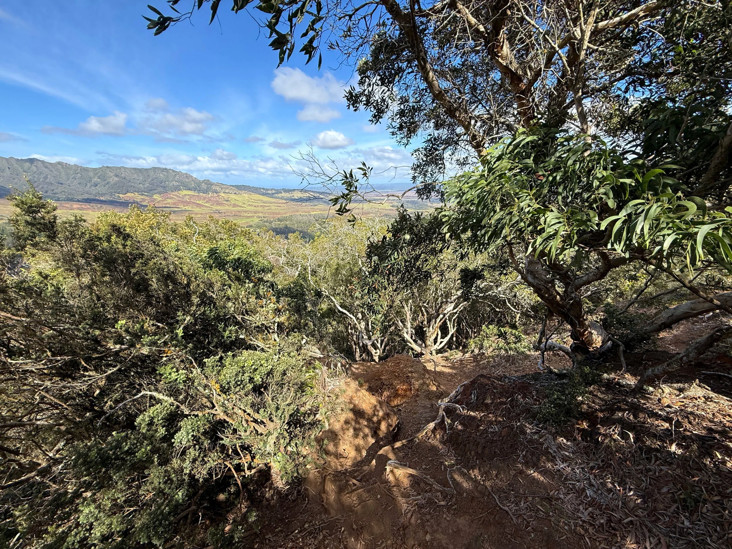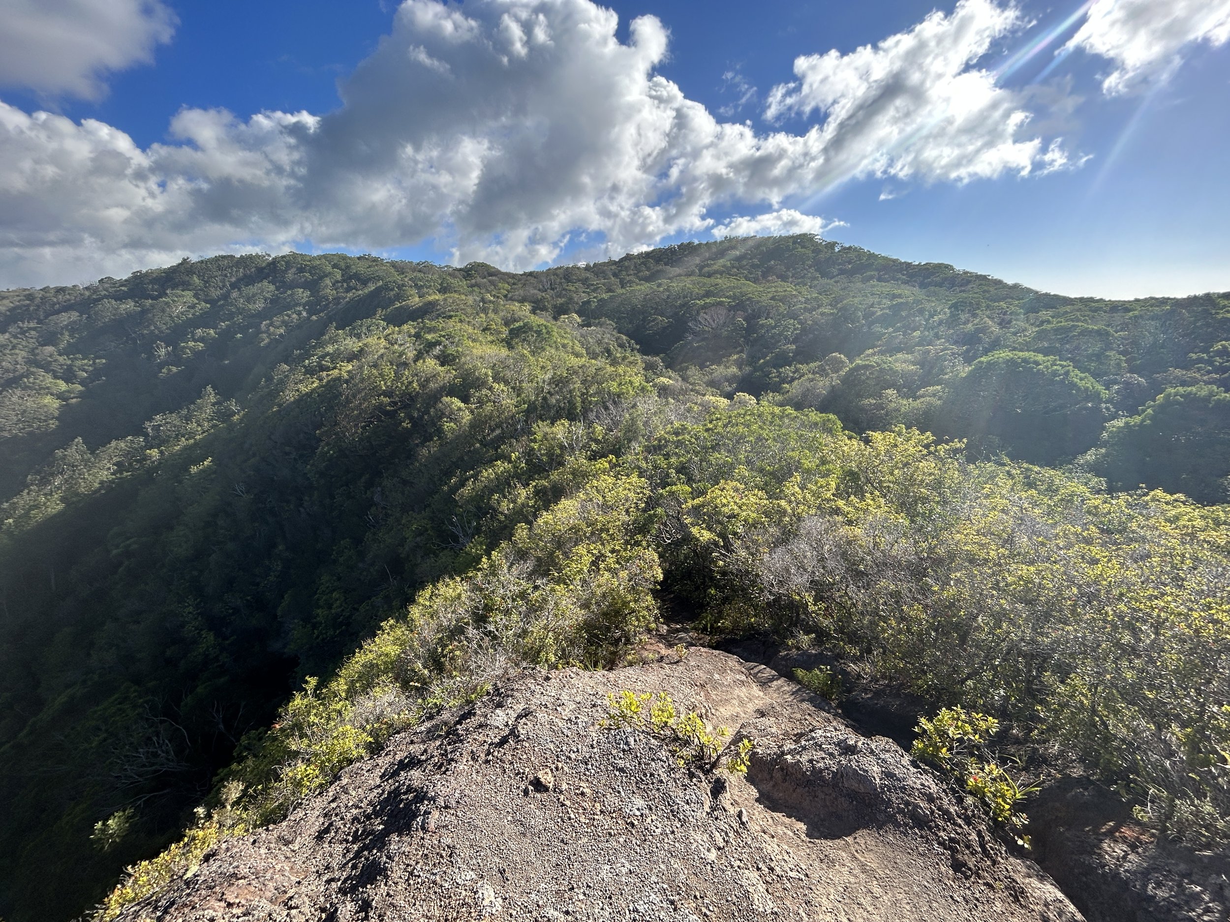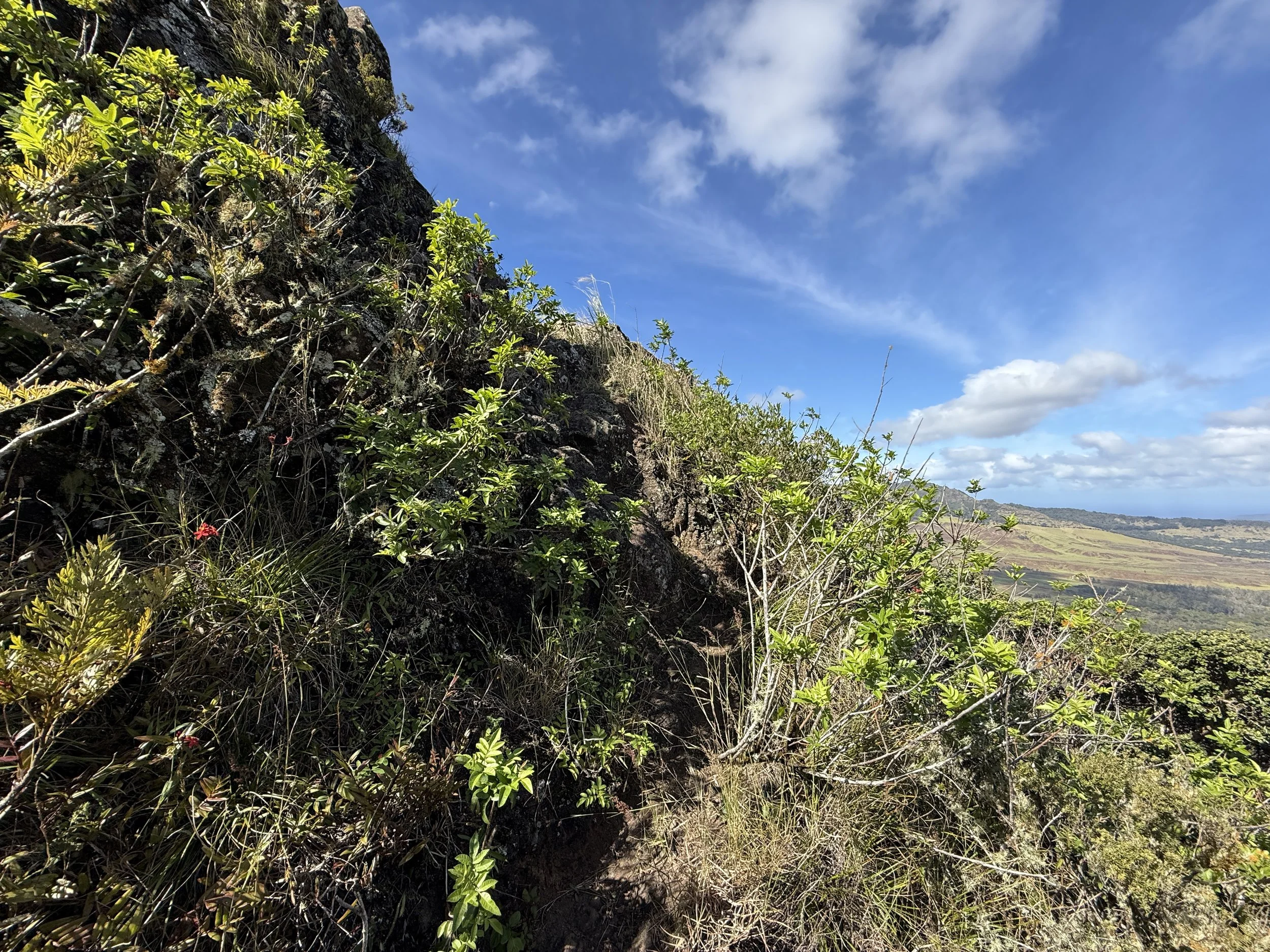 This is where the Puʻu Hapapa Trail splits into two different ridges down the northeast side of the mountain.