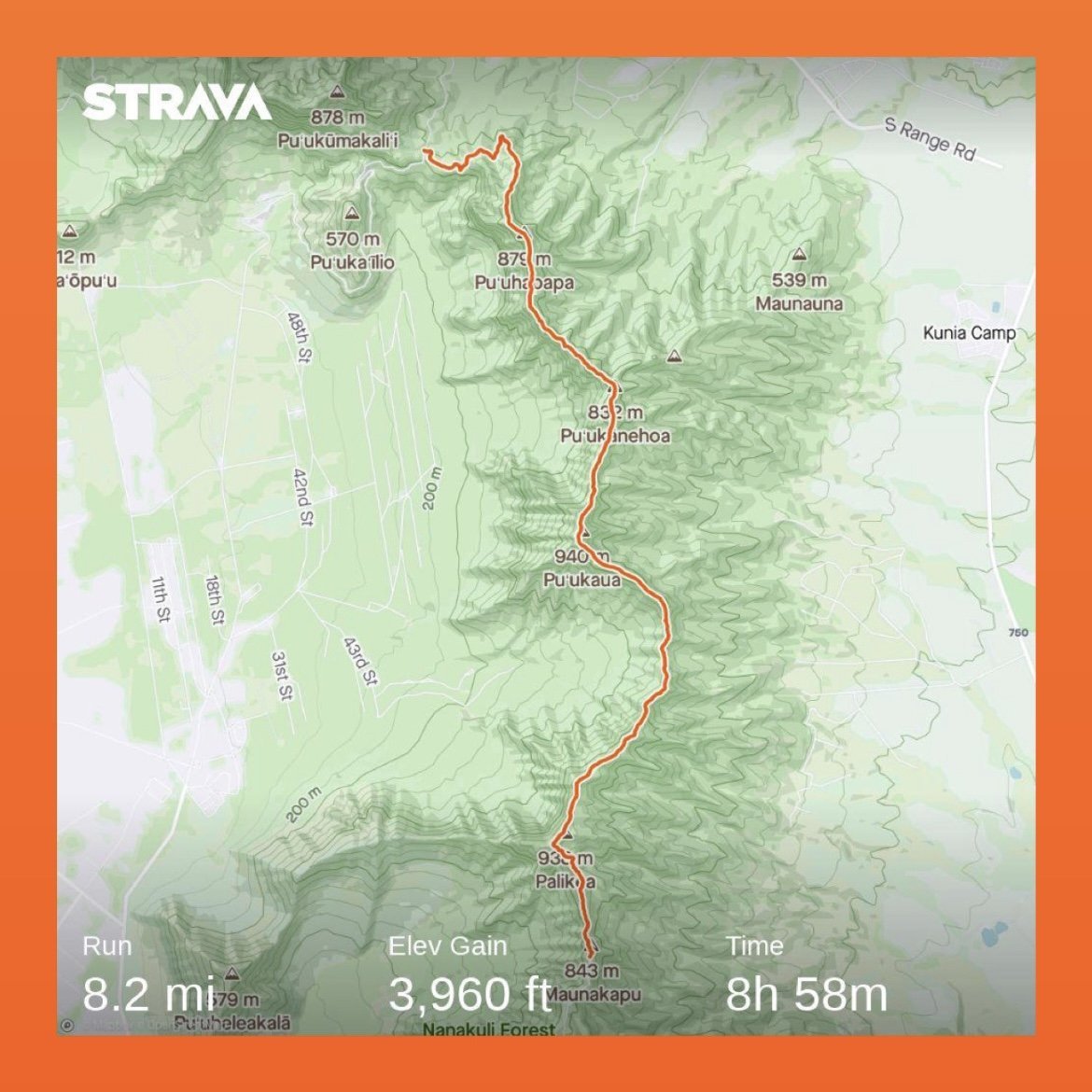 In total, this section from Pālehua to Kolekole took right around 10 hours, covering 8.2 miles (13.2 km), which does not include any walking that you may have to do, whether on Schofield or Pālehua Road.