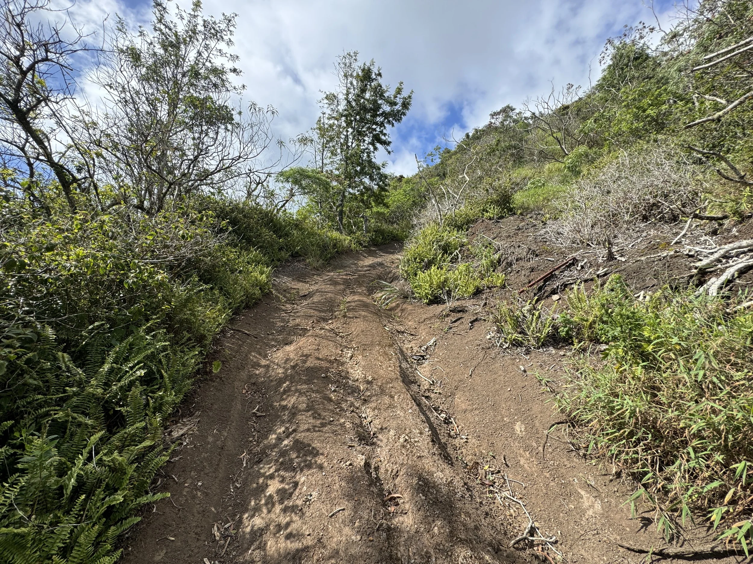 Past these two steep sections, the Puʻu Hapapa Trail to the Honouliuli Contour at the bottom becomes much easier than anything experienced thus far.