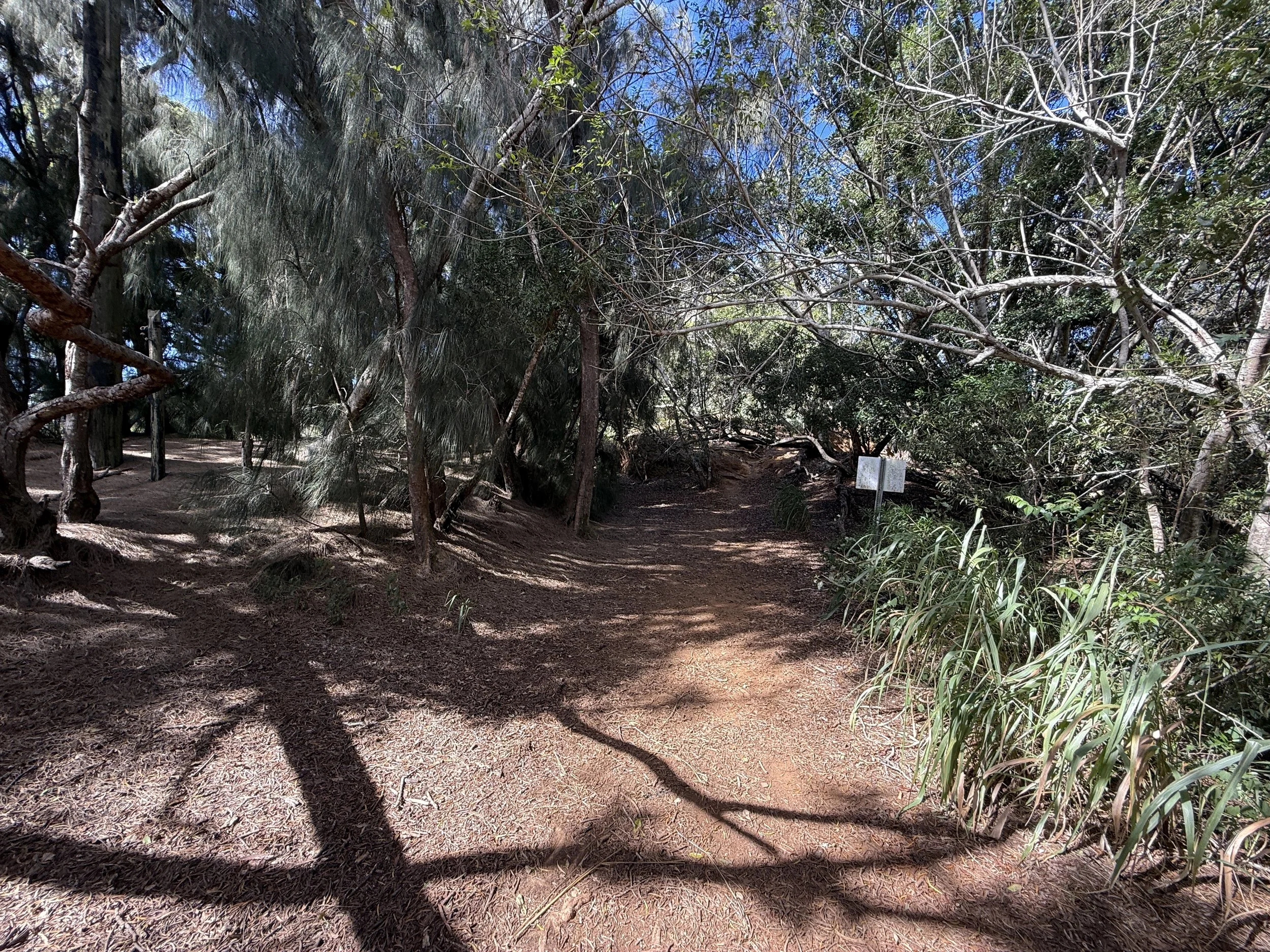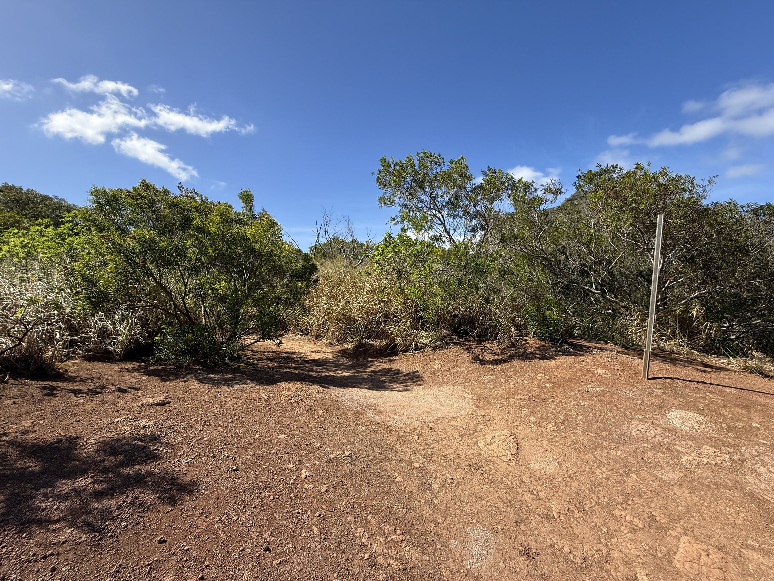 However, I personally recommend against this option and suggest continuing along the Pahole Trail to the Mokulēʻia Bench because re-hiking the Mokulēʻia Access Road just for this section to the bench is not the best use of time.