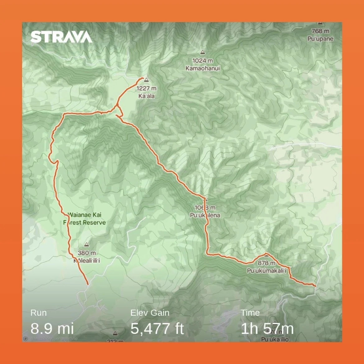 Starting from the Mt. Kaʻala Trailhead in Waiʻanae Valley, the whole hike is roughly 8.9 miles (14.3 km).