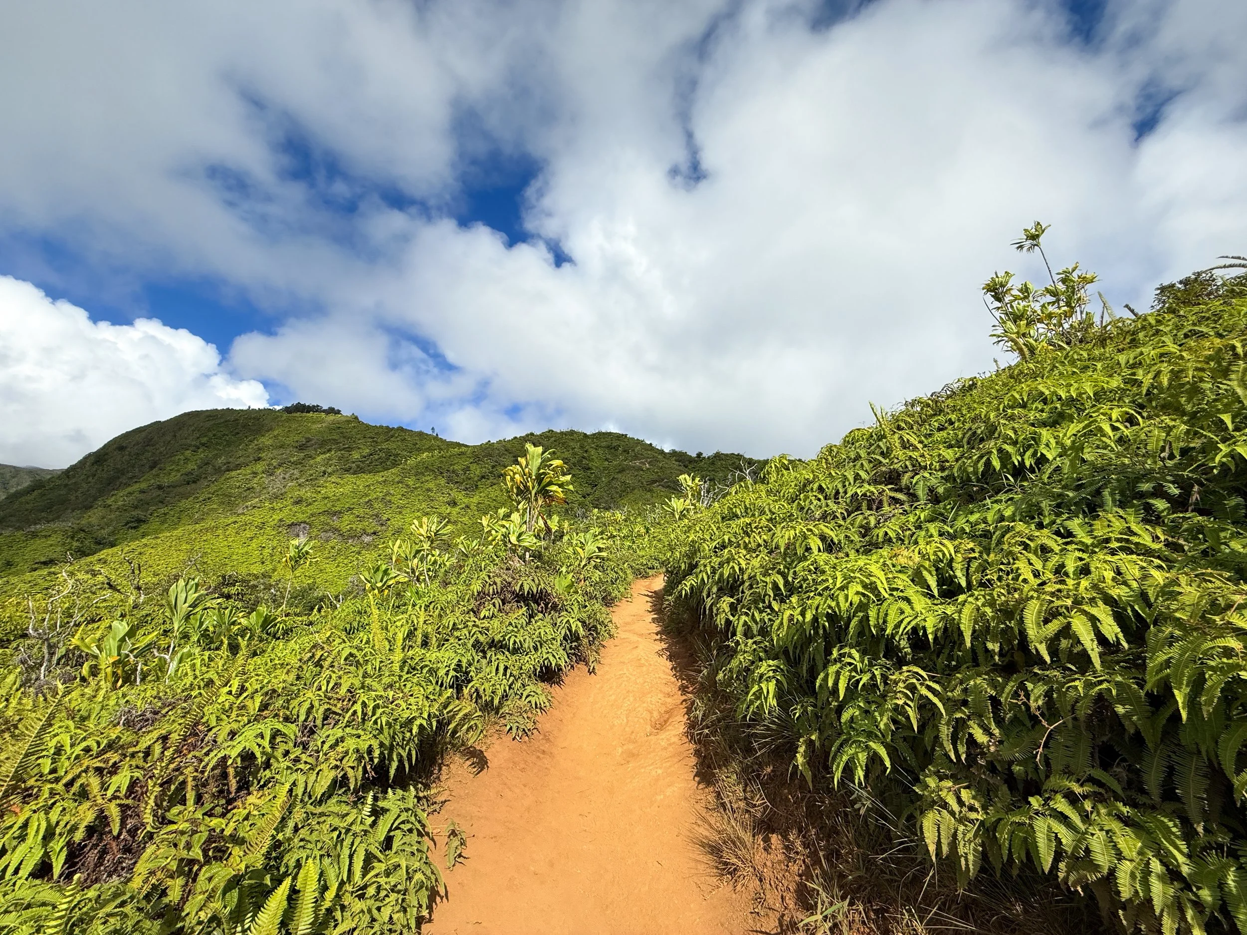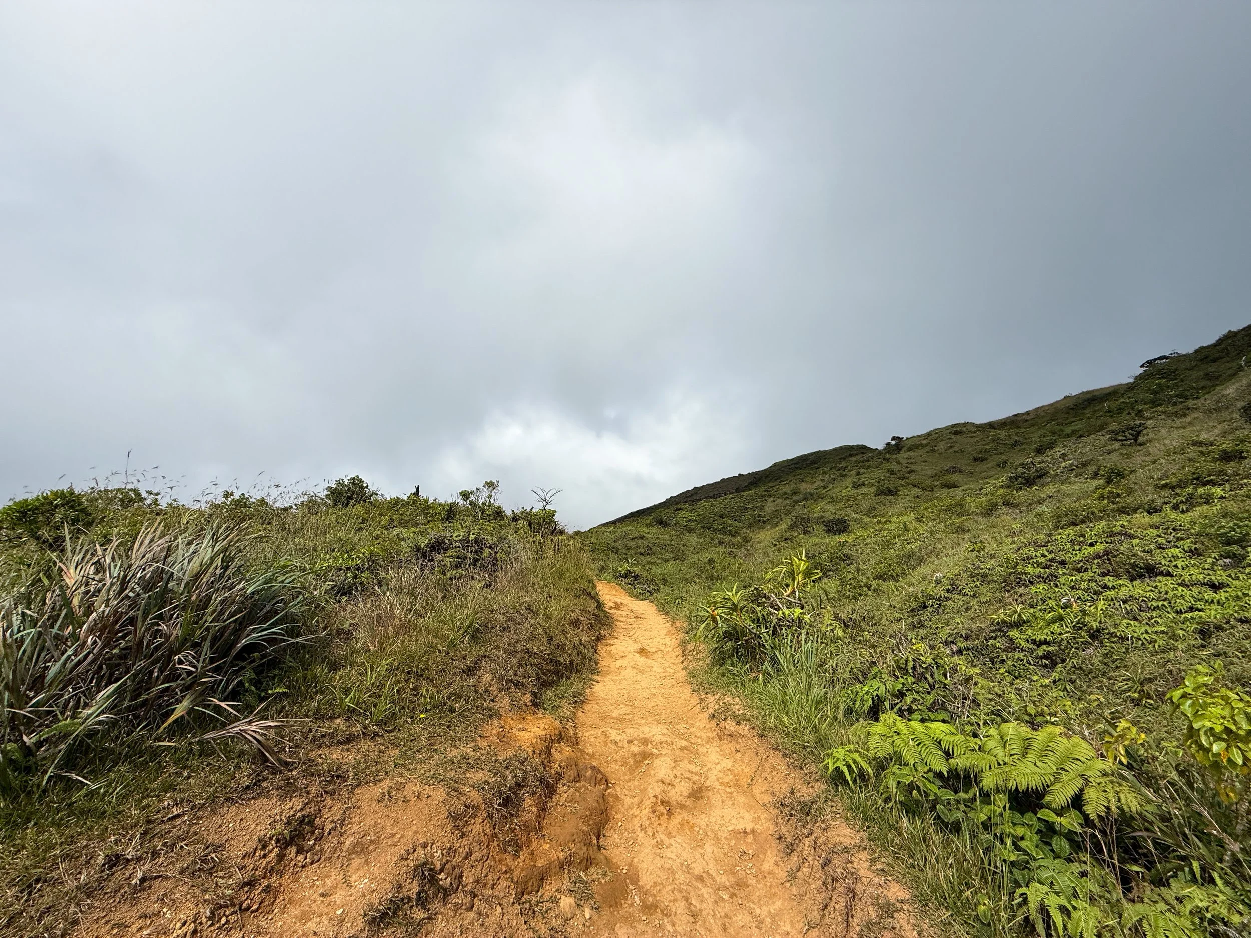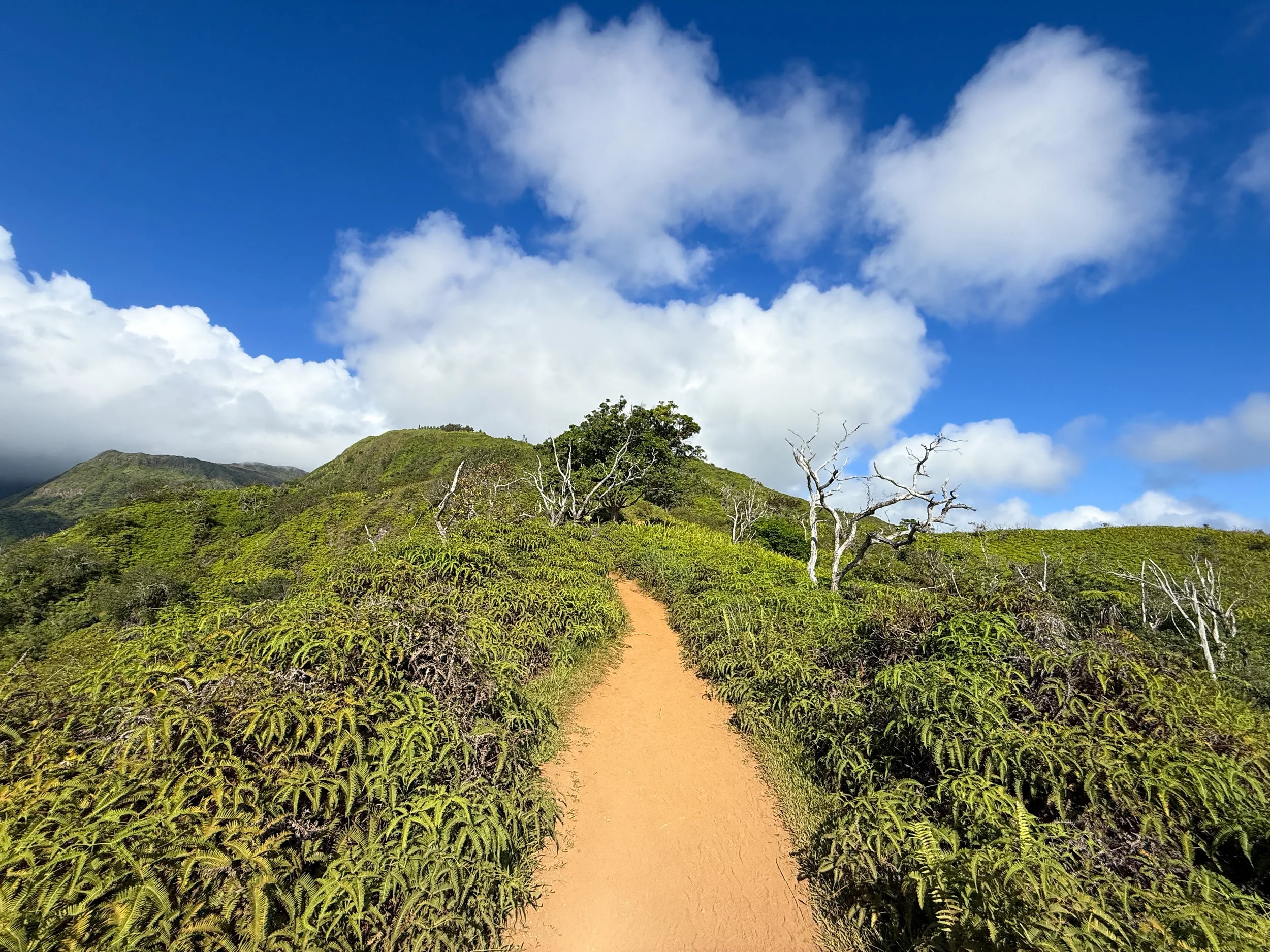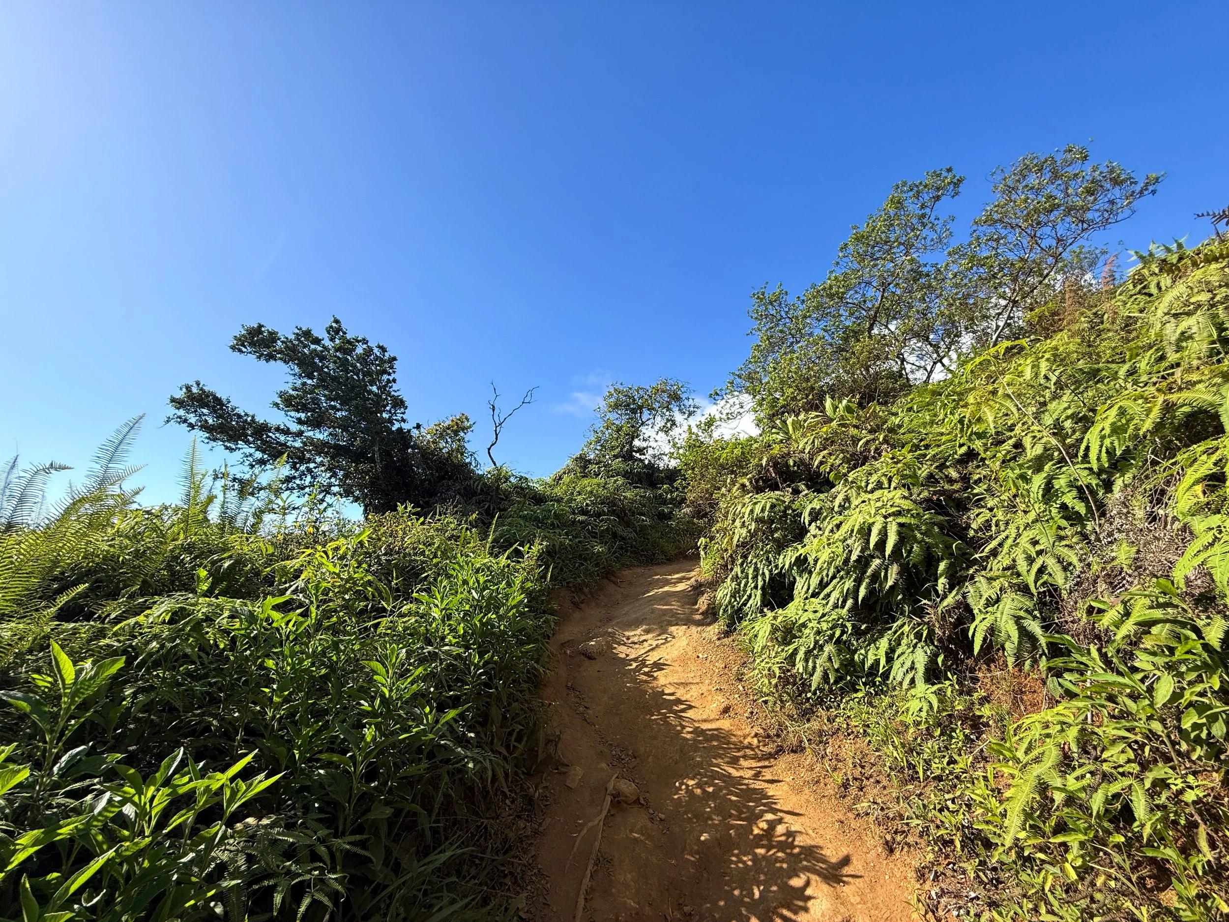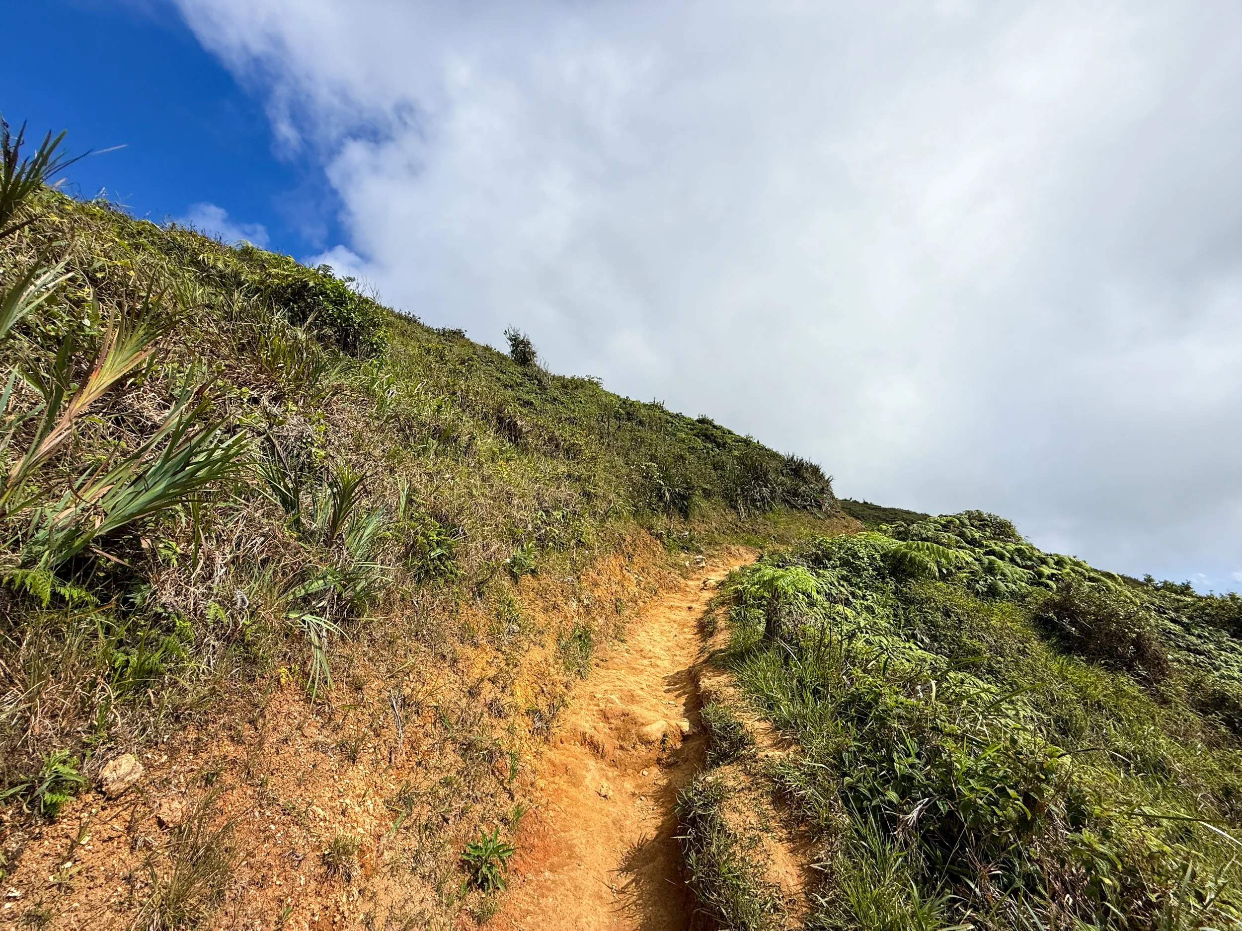 After the Waiheʻe Valley Overlook, the Waiheʻe Ridge Trail follows a slightly flatter section for the next 0.2 miles (0.3 km).