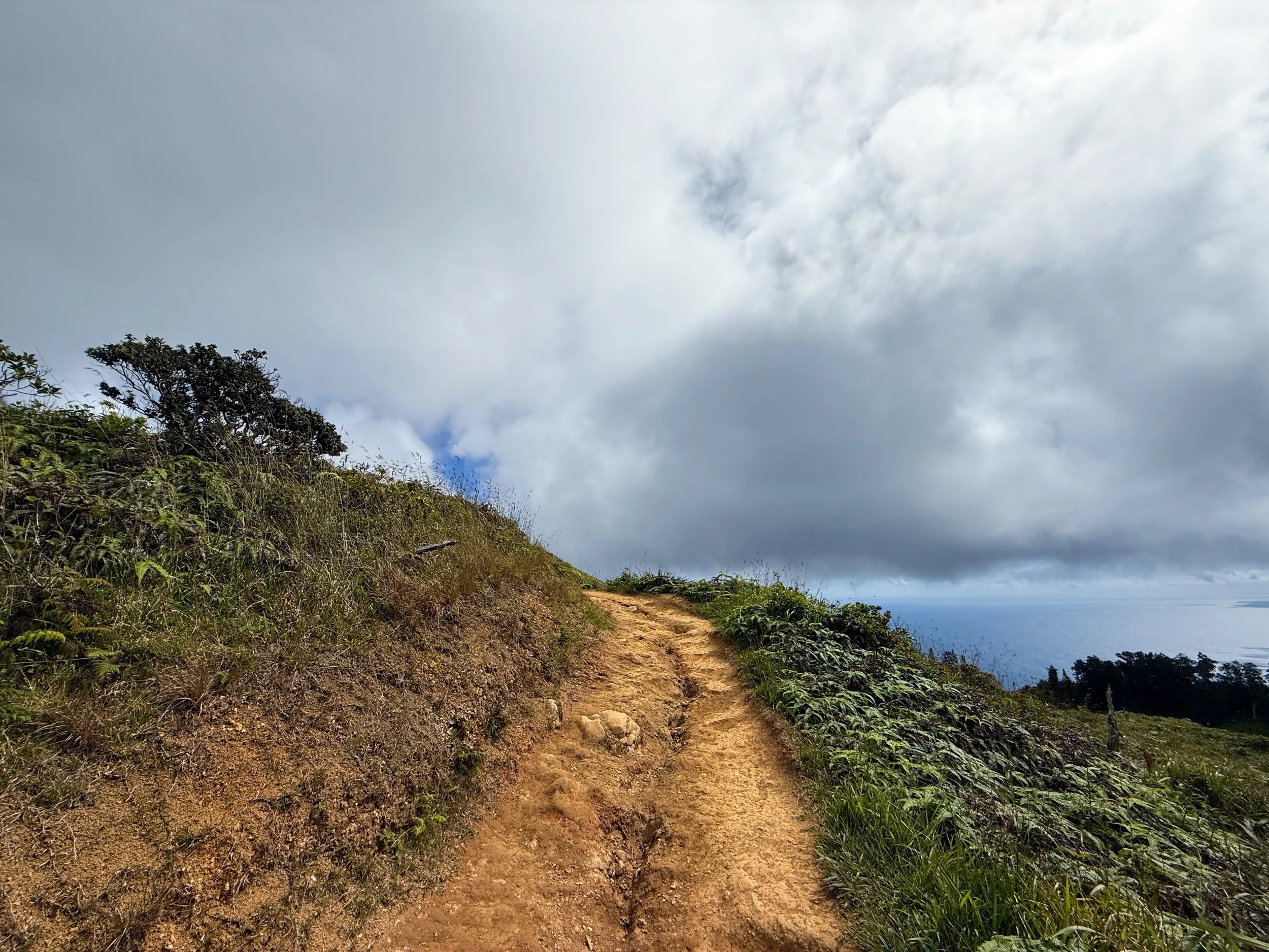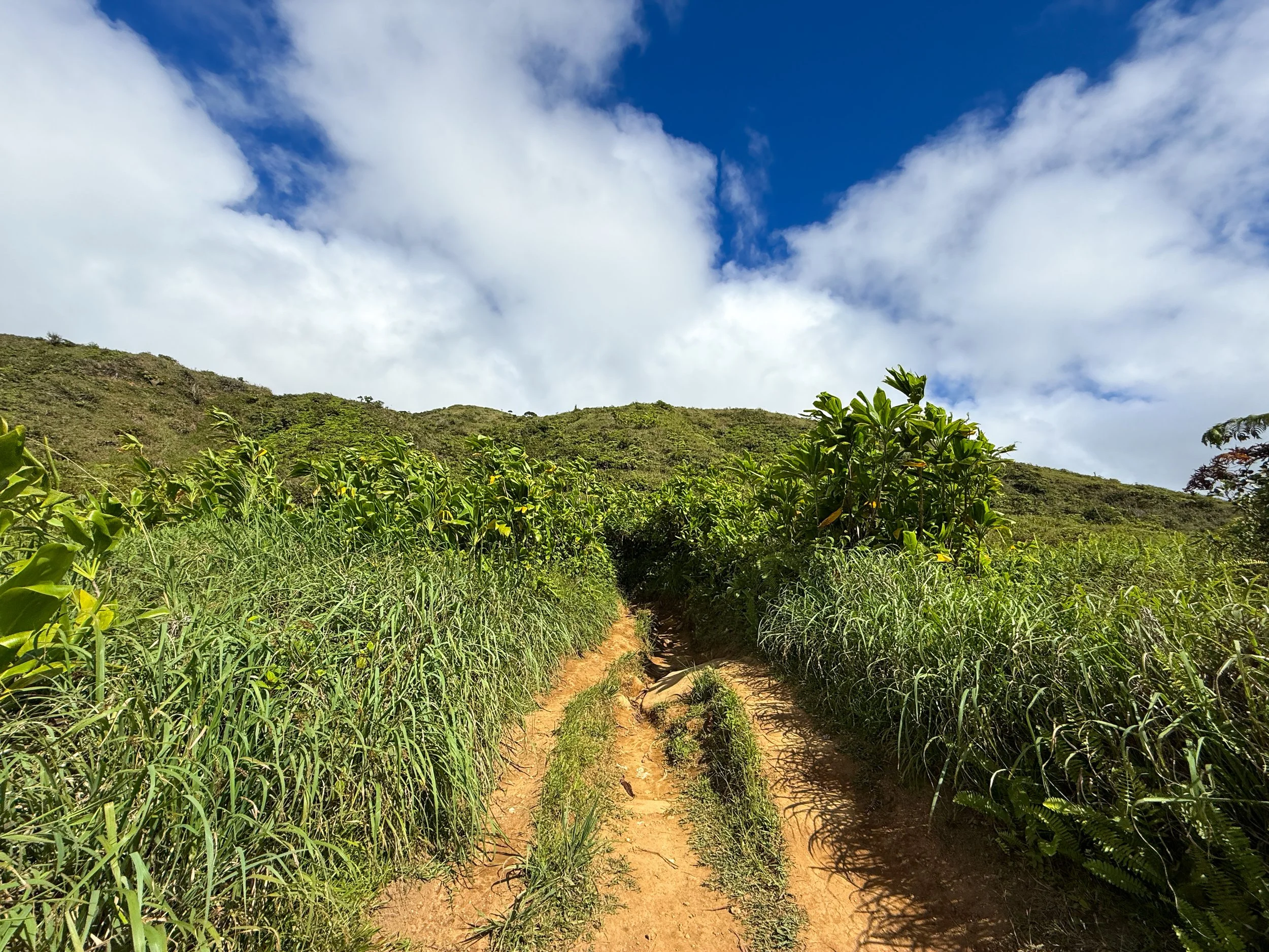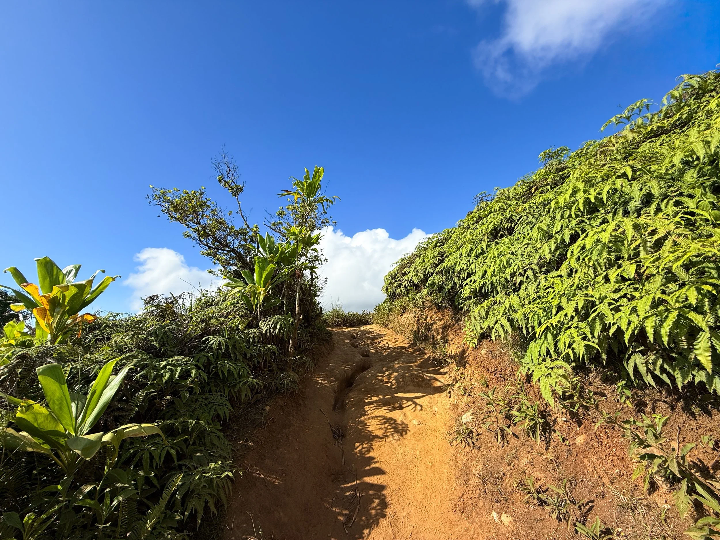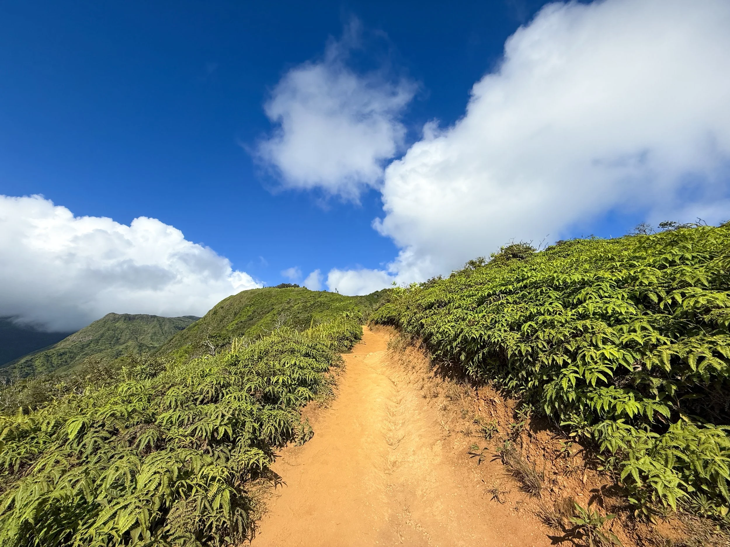 After the Waiheʻe Valley Overlook, the Waiheʻe Ridge Trail follows a slightly flatter section for the next 0.2 miles (0.3 km).