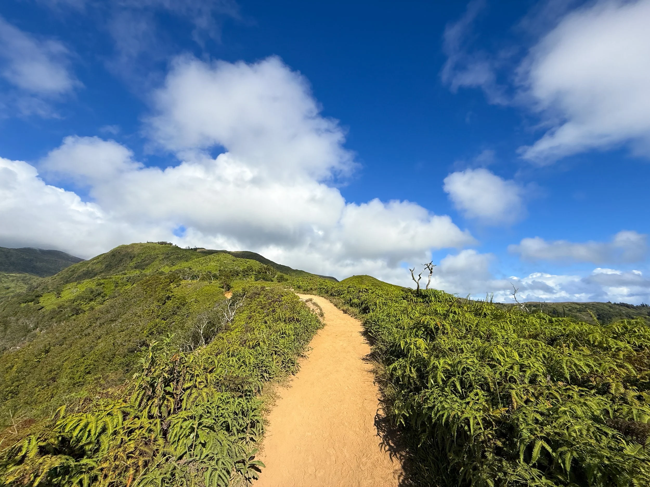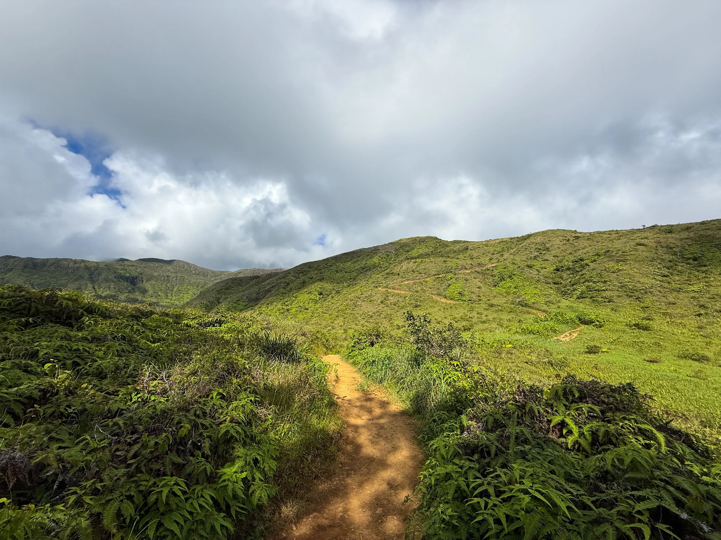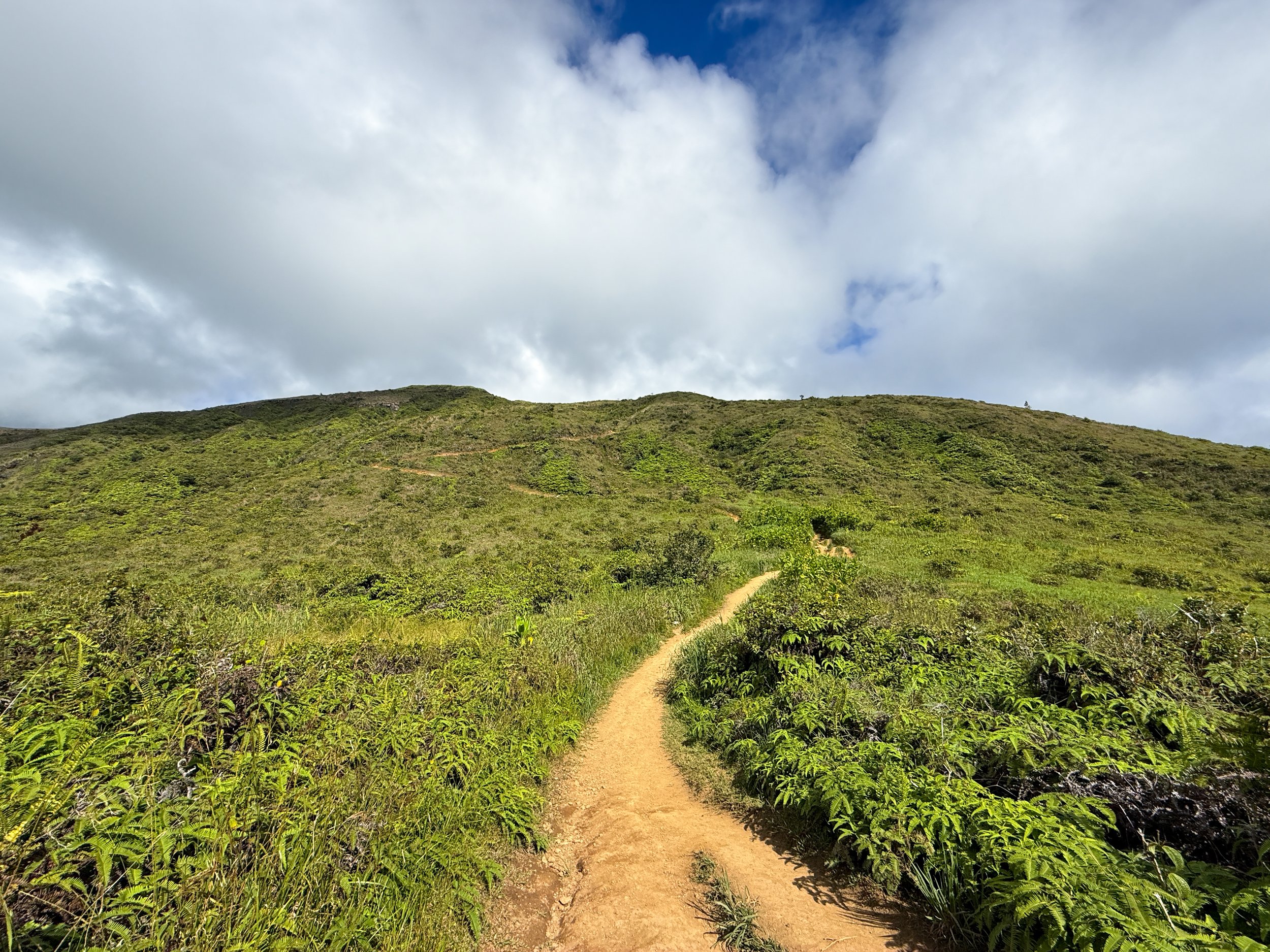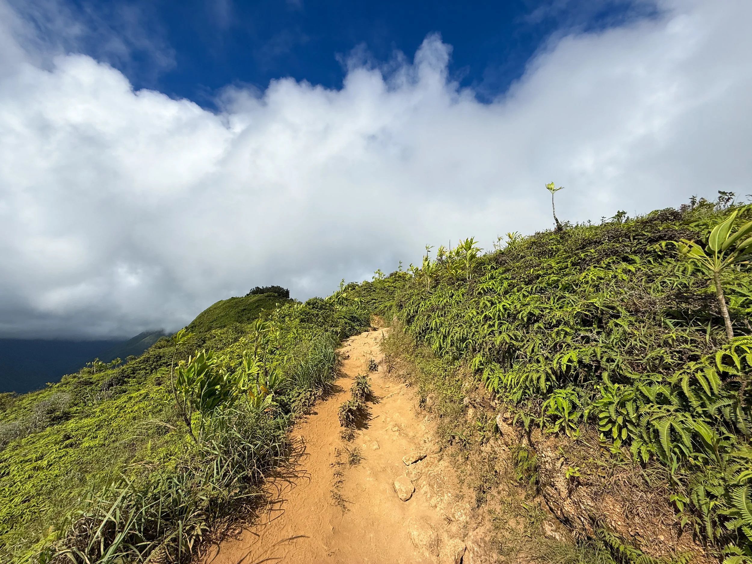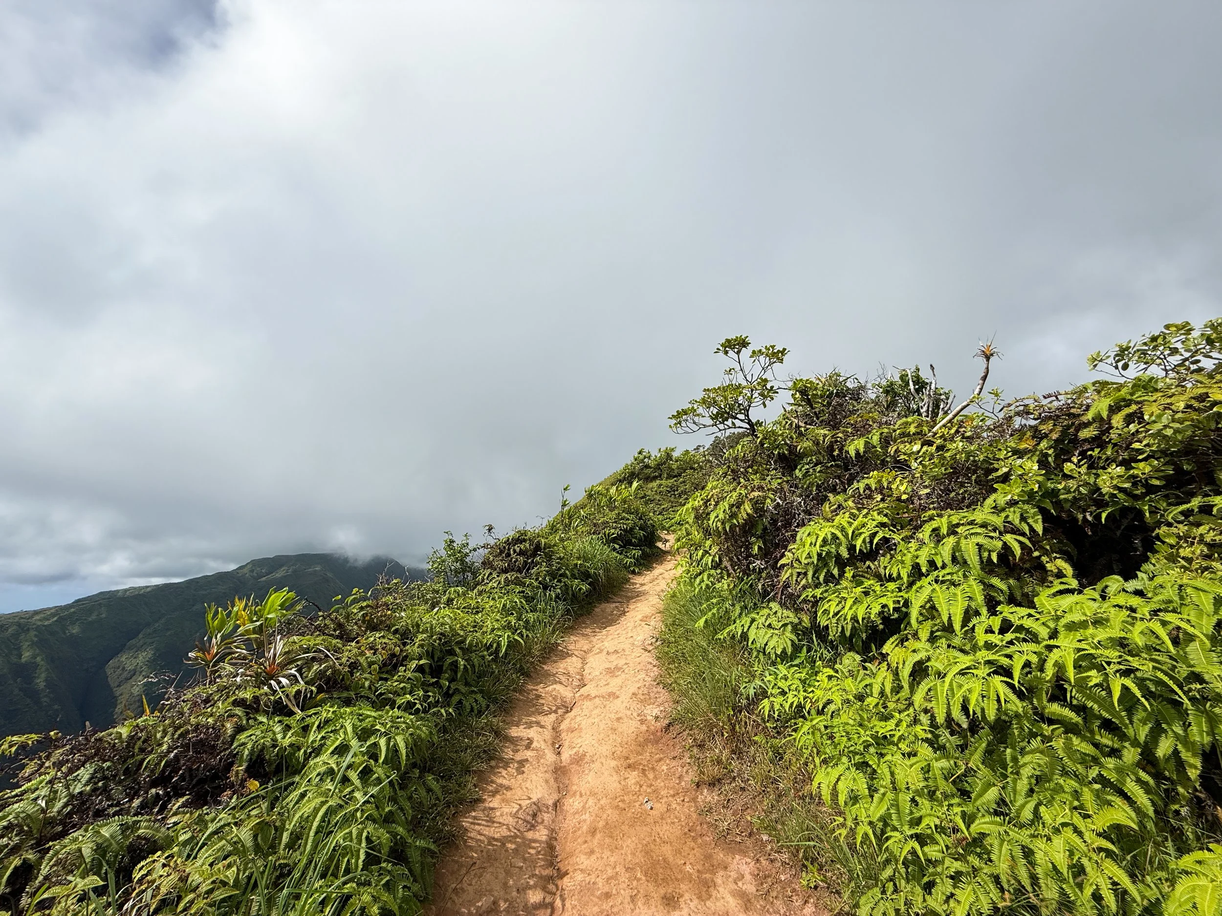 This long, straight stretch is where the Waiheʻe Ridge Trail climbs up to the summit ridge!