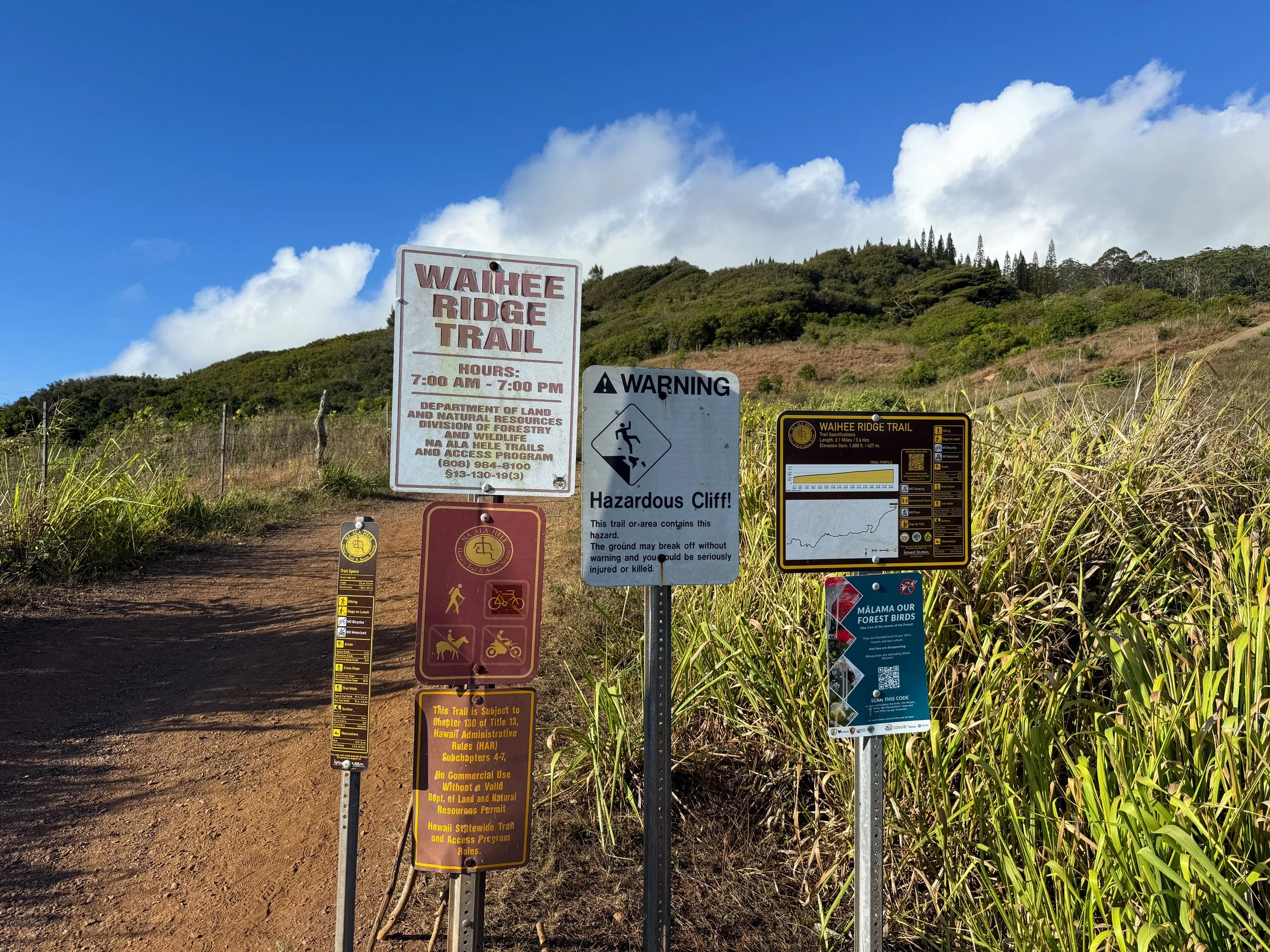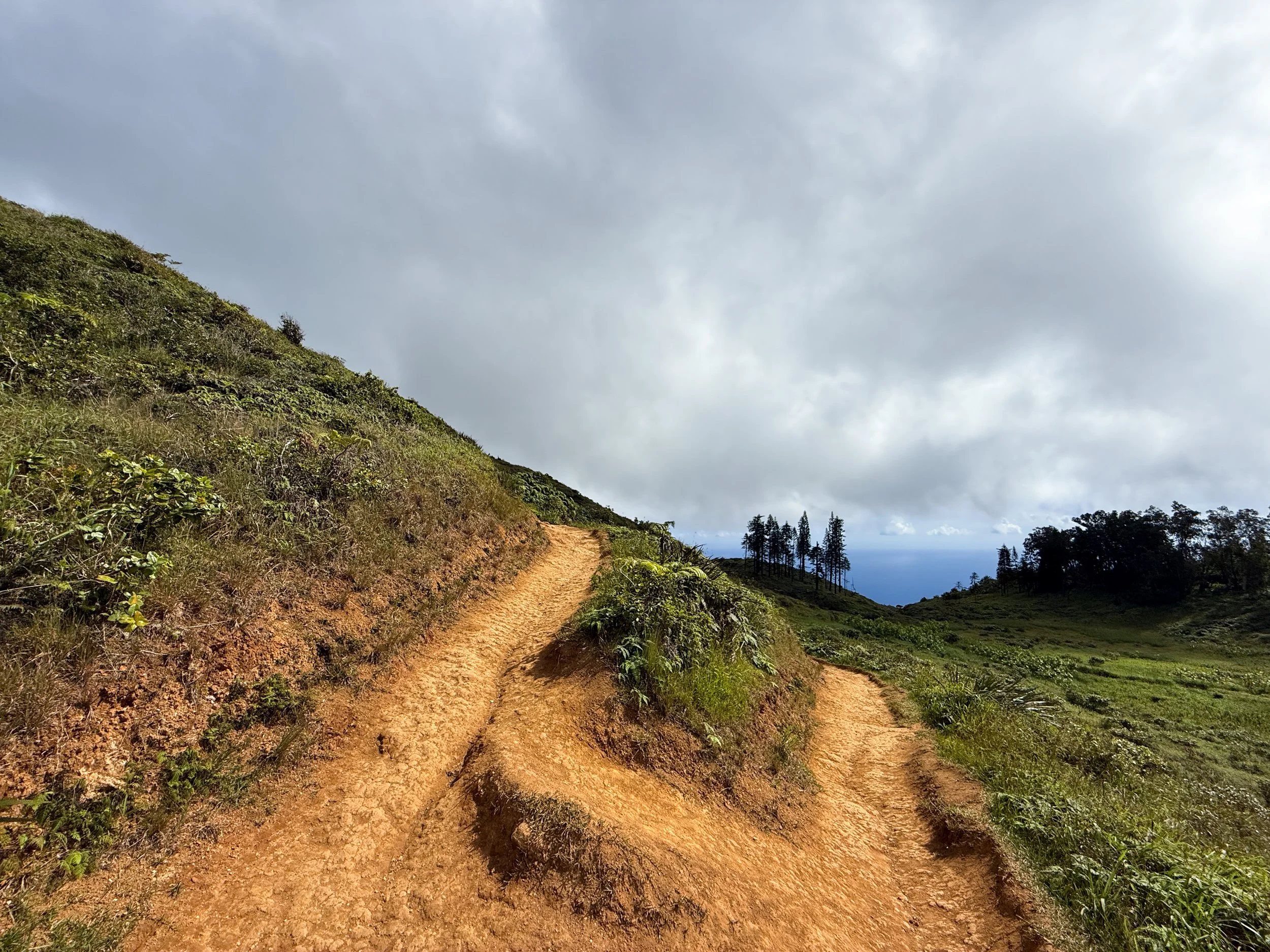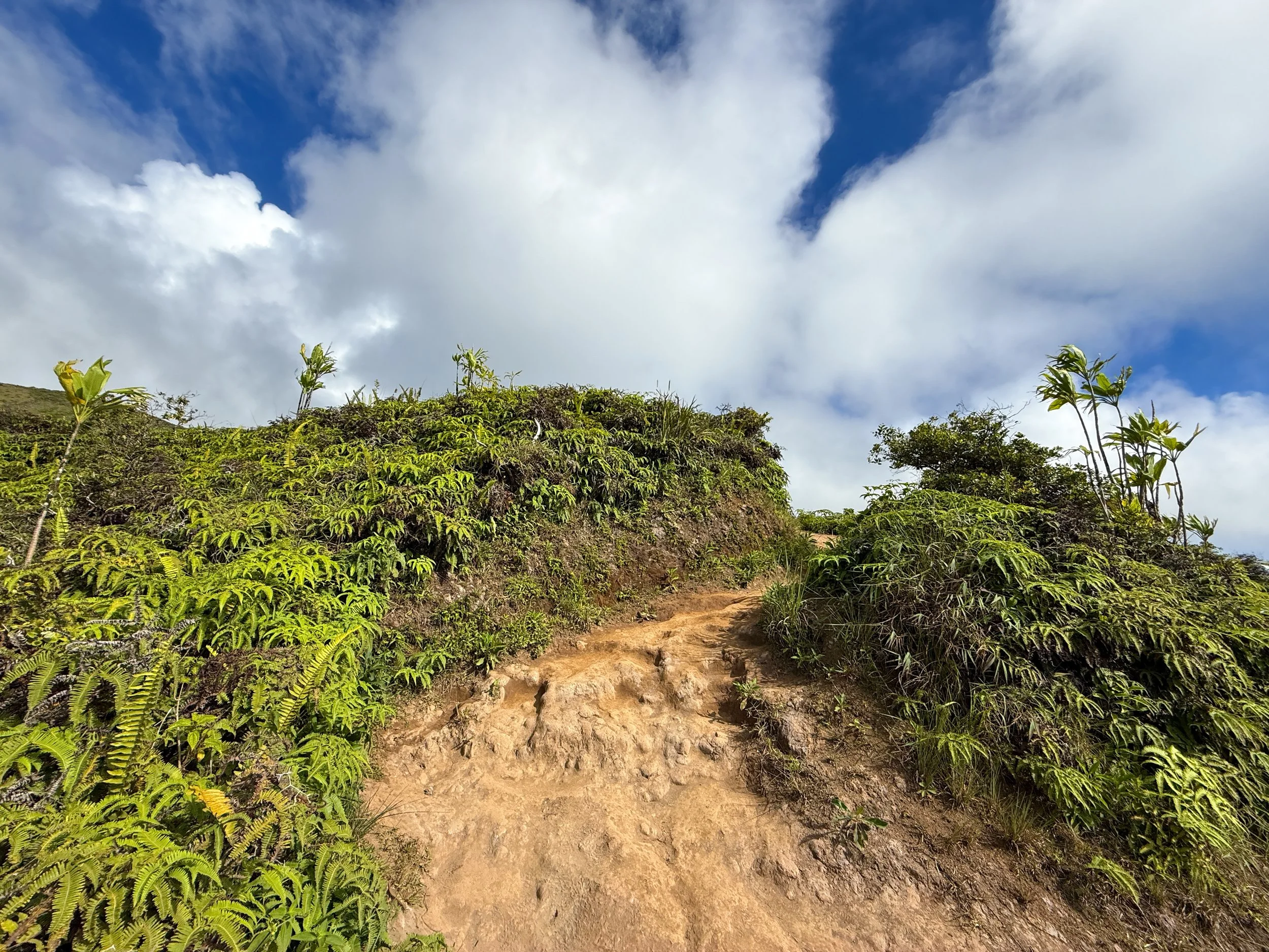 If this first hill says anything, the Waiheʻe Ridge Trail is a near-constant uphill hike, ascending roughly 1,400 ft. (427 m) over the course of 2.2 miles (3.5 km) to the summit of Puʻu Lanilili.