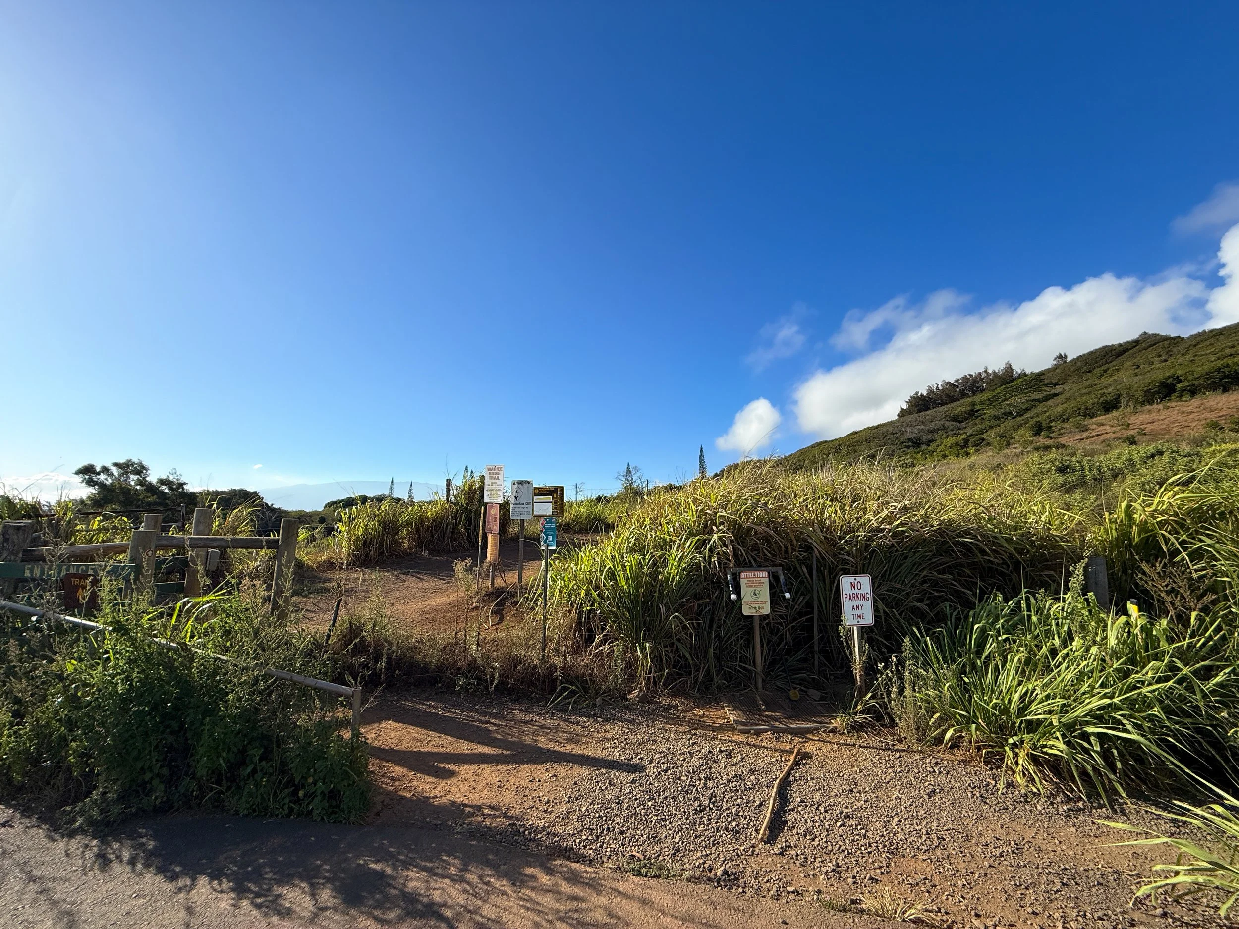 Parking for the Waiheʻe Ridge Trail is located in a very small parking lot at the top of Maluhia Road, about 0.8 miles (1.3 km) up the hill from the turnoff to Kahekili Highway.