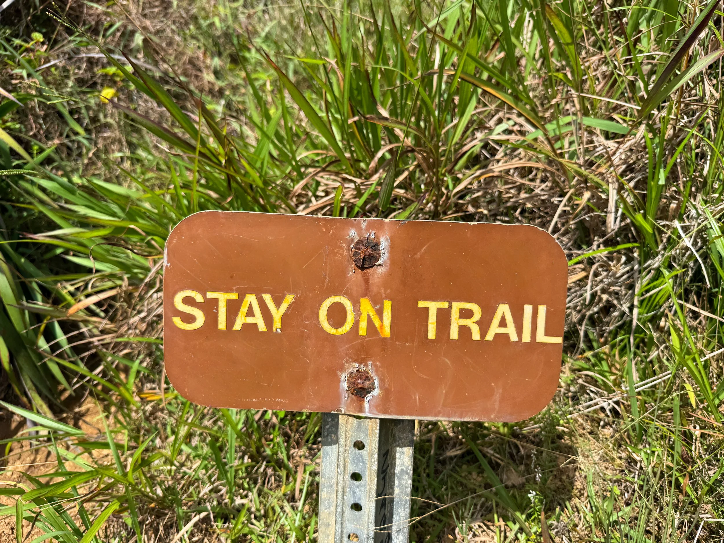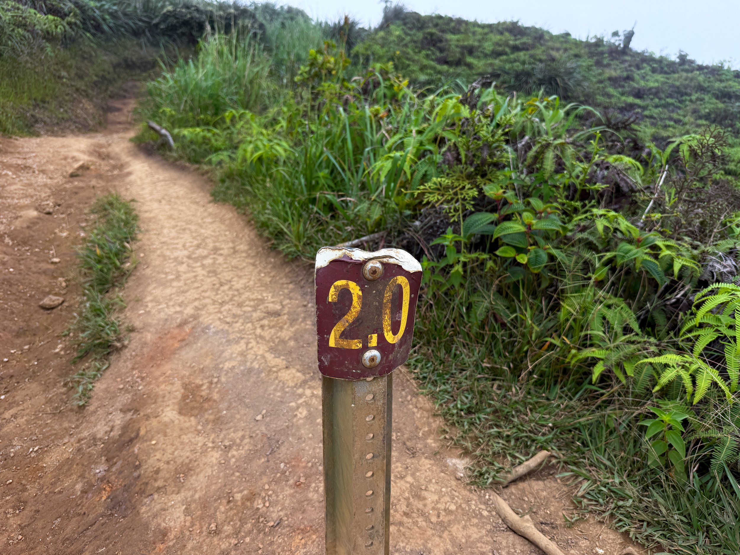 The 2.0-mile (3.2 km) mark is a nice sign that the end of the Waiheʻe Ridge Trail is only a short distance ahead!