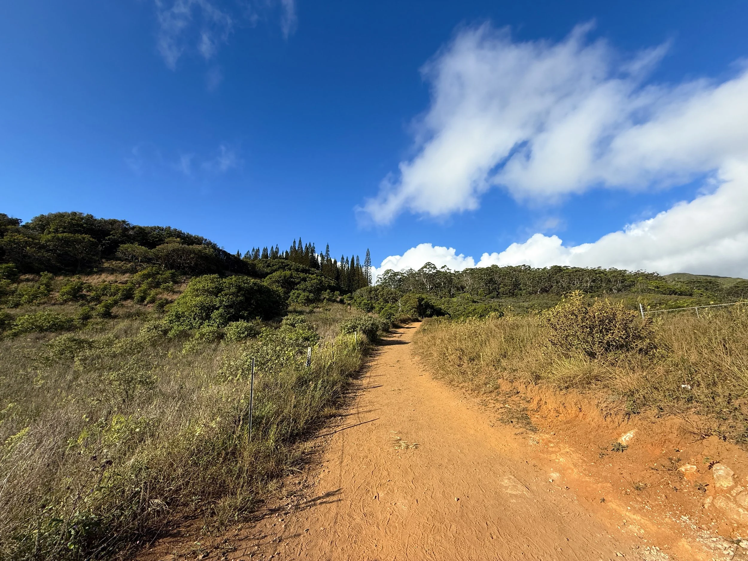 That said, I recommend wearing a hooded sun shirt for the hike up to Puʻu Lanilili, as there really are few places to find shade from this point to the summit, apart from one short stretch just before the meadow.