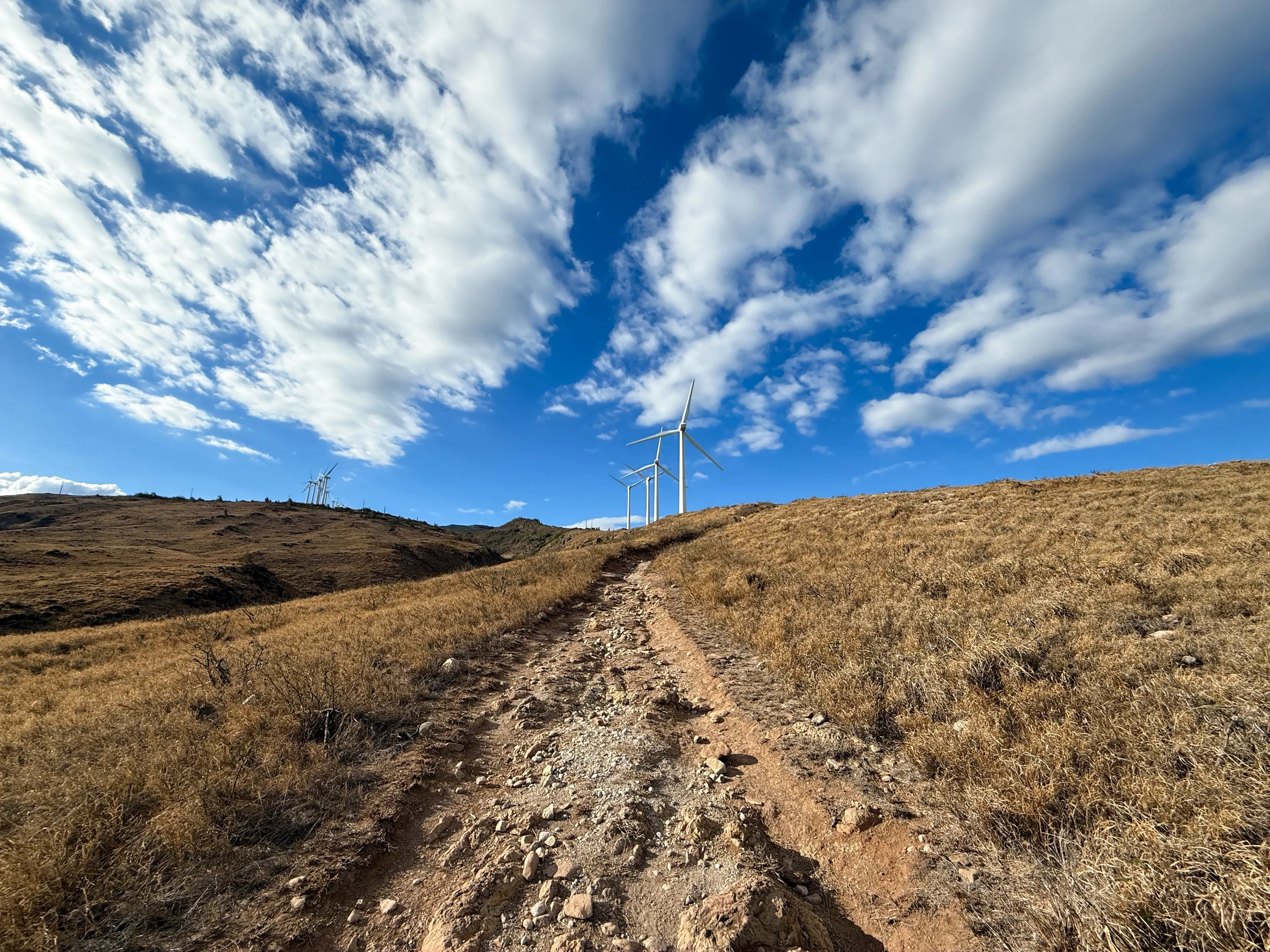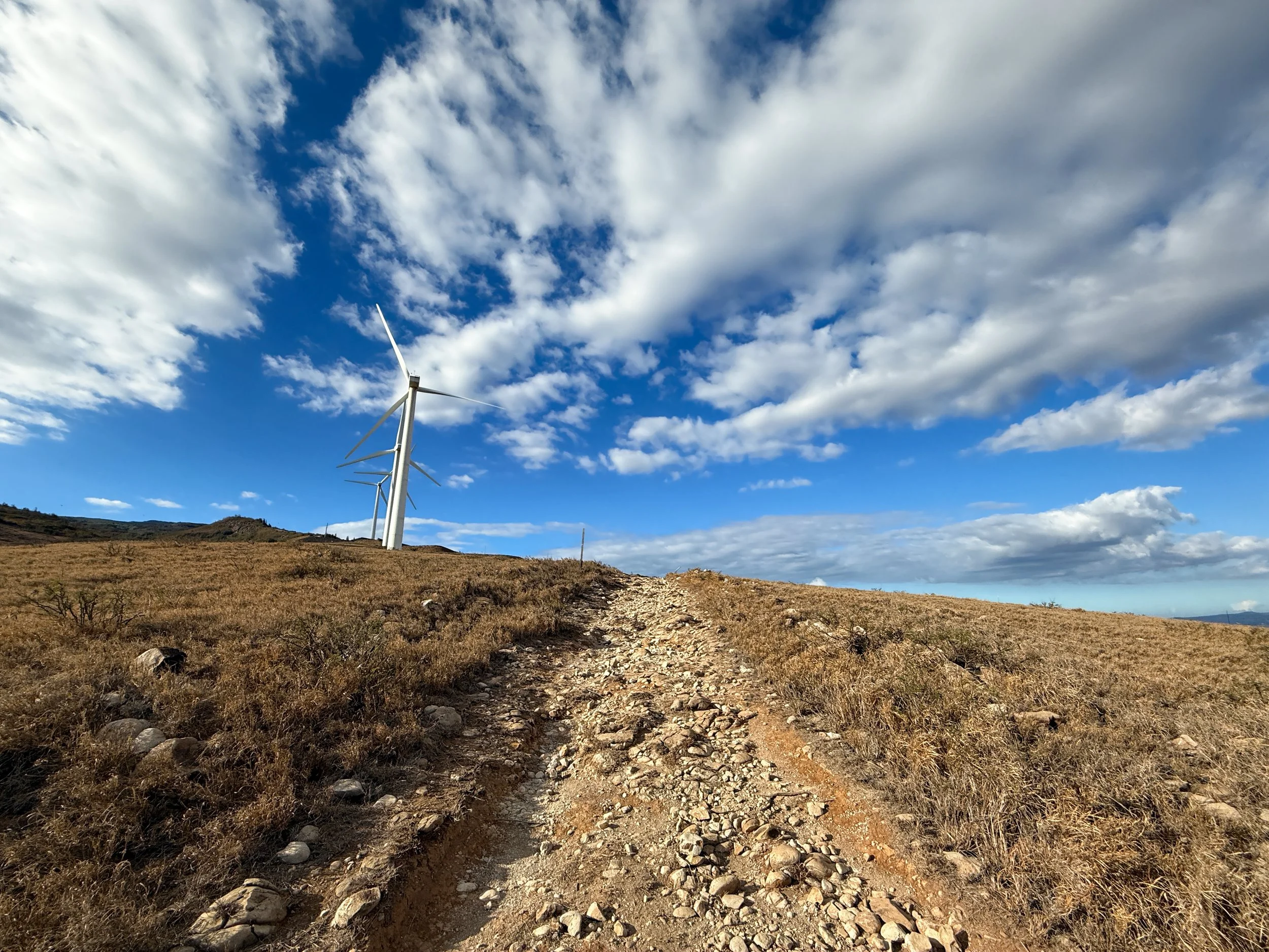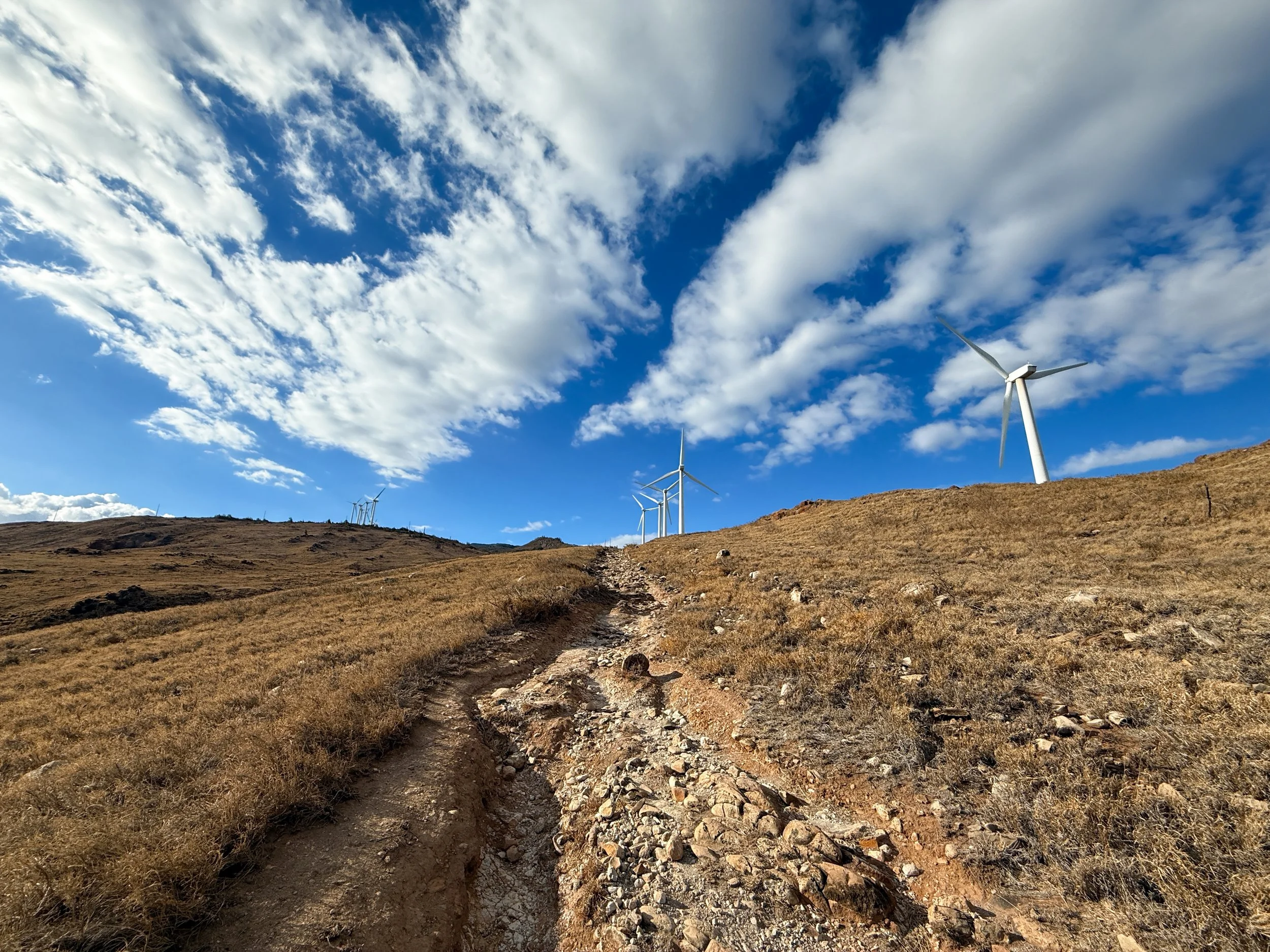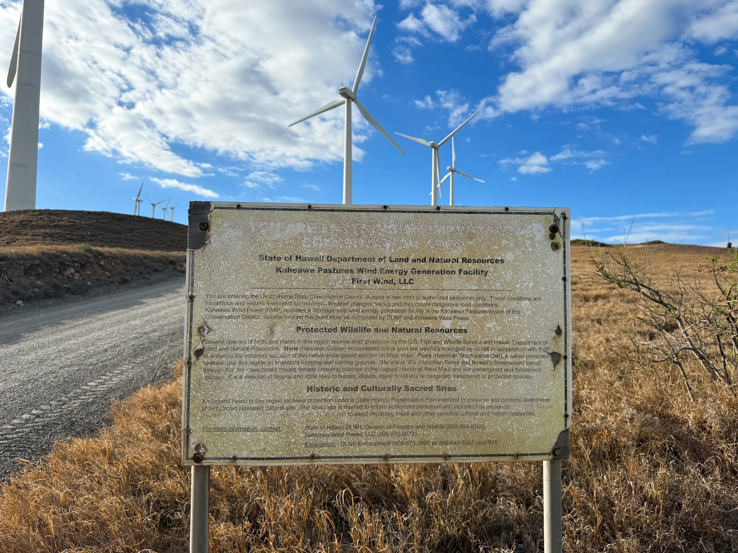 Just before Kaheawa Pastures Access Road, the West Lāhainā Pali Trail climbs 3 switchbacks to reach the windmills on Kealaloloa Ridge.