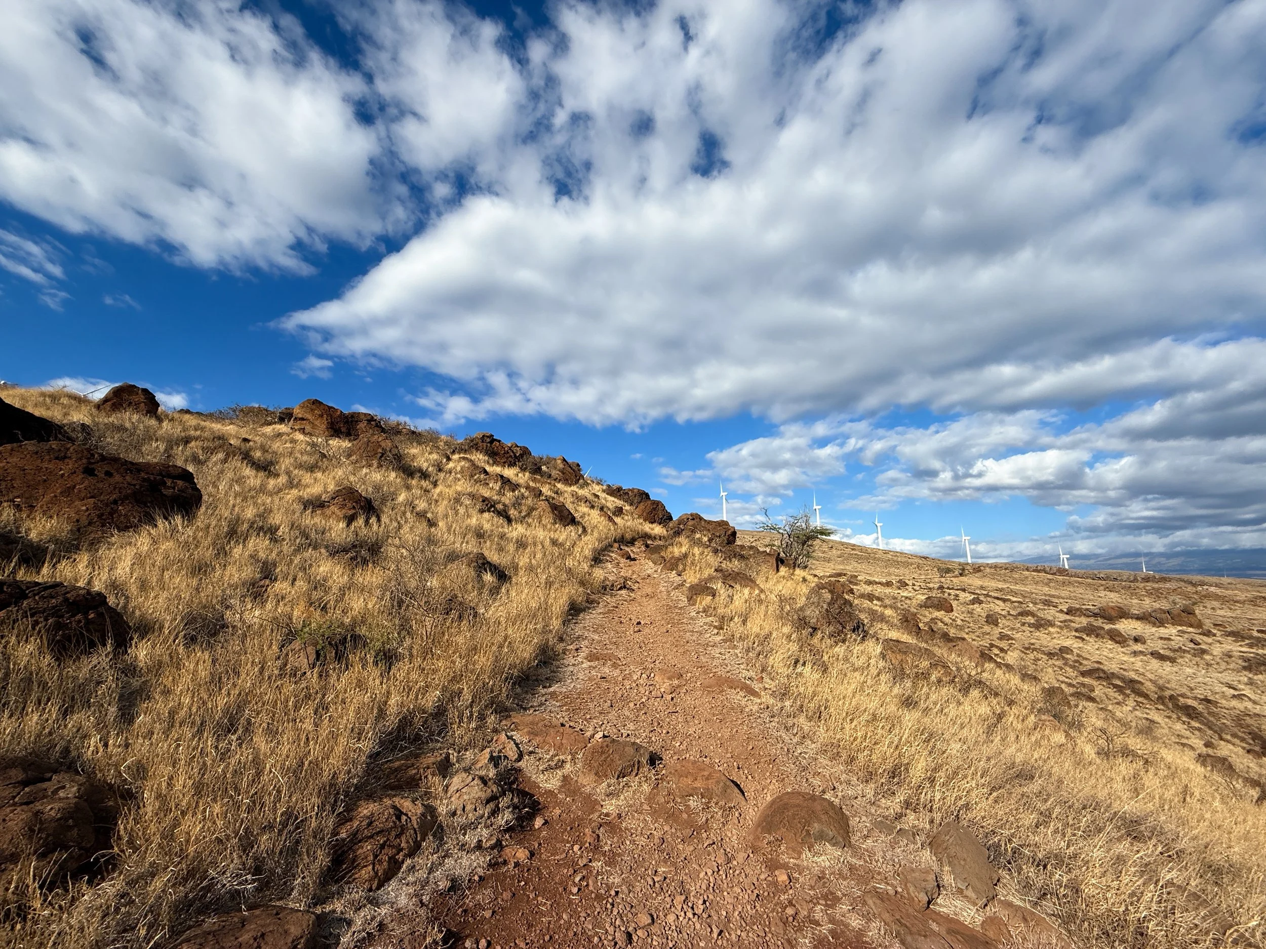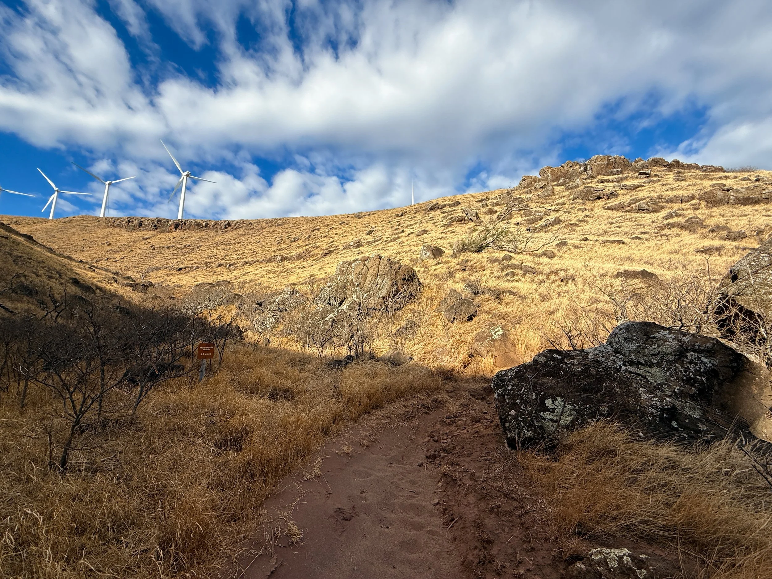 However, it’s important to understand that starting the West Lāhainā Pali Trail in the mid- to late-afternoon hours will almost always be very hot, and there’s really no way around this if you want to hike as high as the windmills on Kealaloloa Ridge.