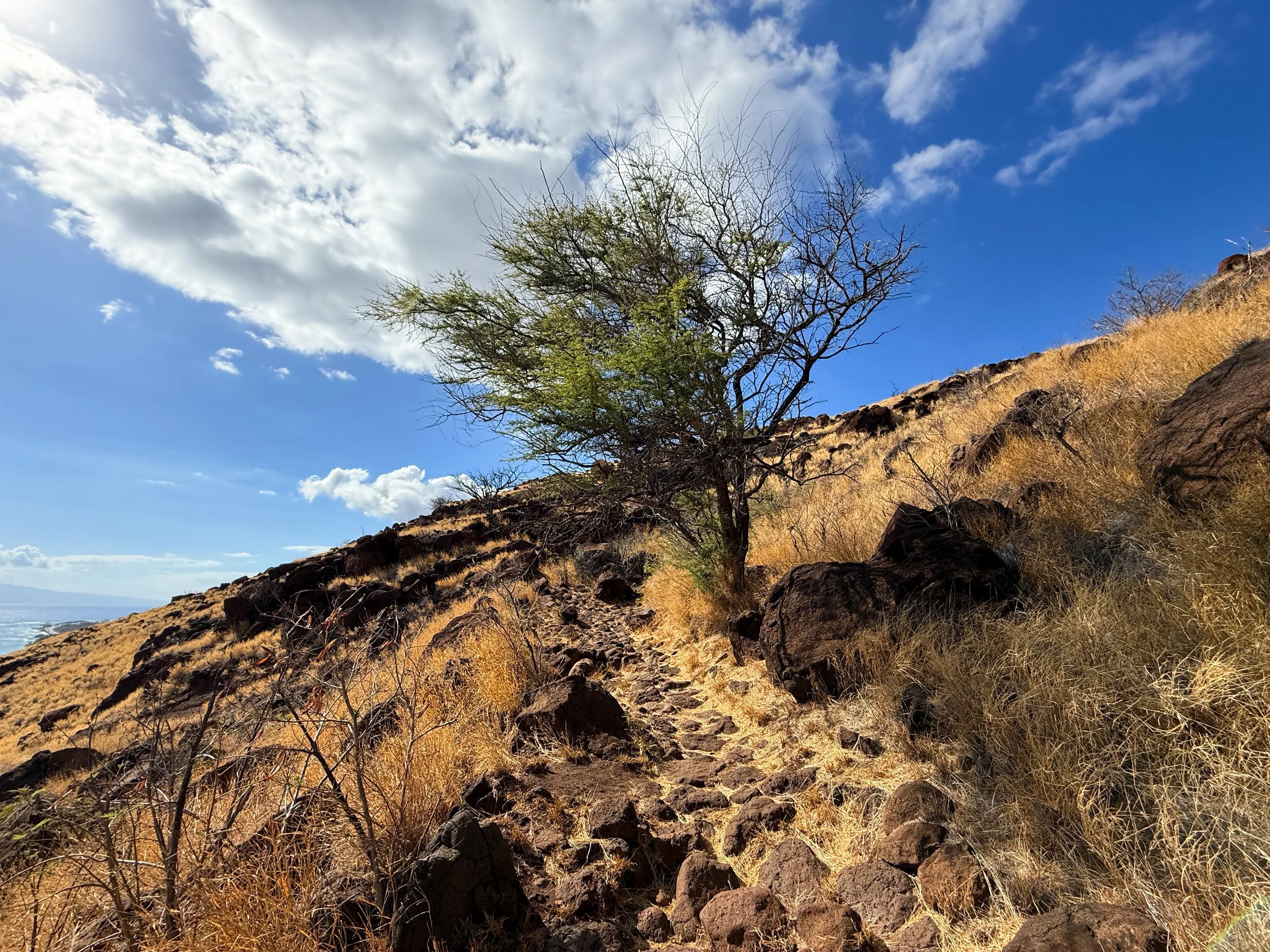 Historically speaking, the Lāhainā Pali Trail used to be a beautiful dryland forest, primarily consisting of endemic Wiliwili trees, among other native understory species.