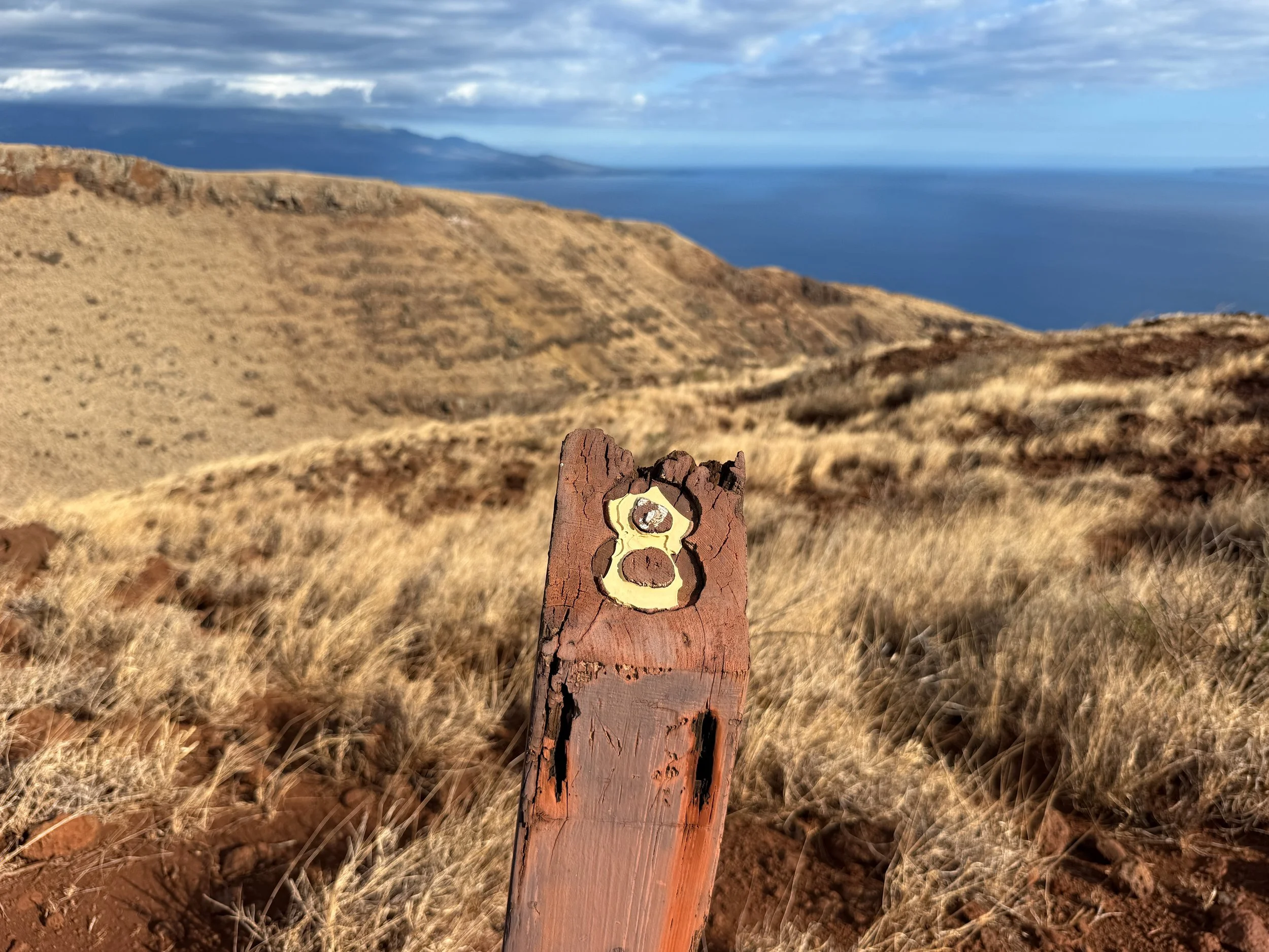 This is where the West Lāhainā Pali Trail meets Kaheawa Pastures Access Road, signaling the end of the West Lāhainā Pali Trail and the start of the East Lāhainā Pali Trail.